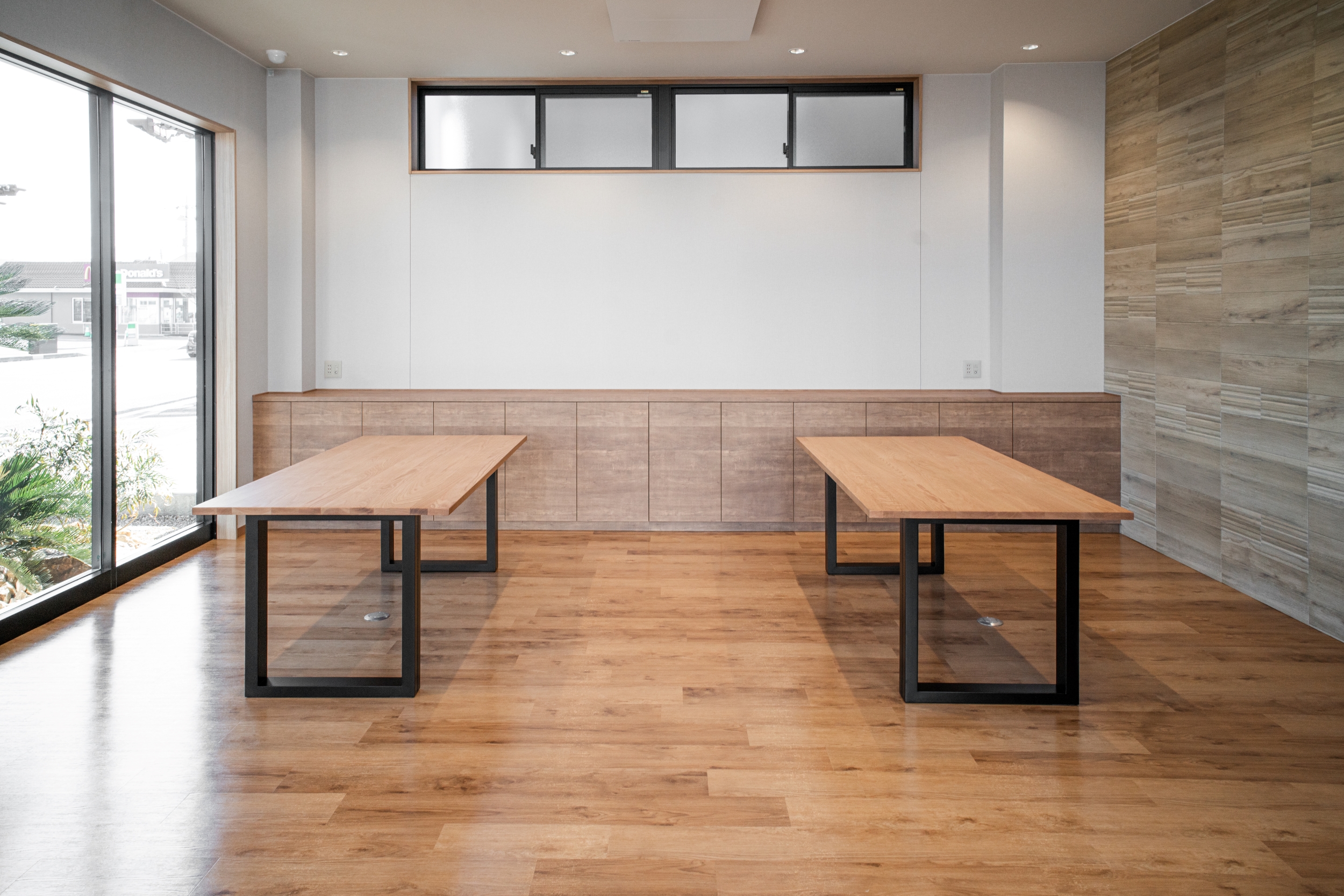 lixilリフォームショップ ライファ甲府中央様に、ナラ(オーク)無垢材のダイニングテーブルをお届けしました。イベントや打ち合わせ等で利用されるとのご要望を受けて、1800×900の大判サイズを2台ご用意させていただきました。脚部はブラック仕様をお選びいただき、豪華な空間に良く似合う格好良い仕上がりになりました。