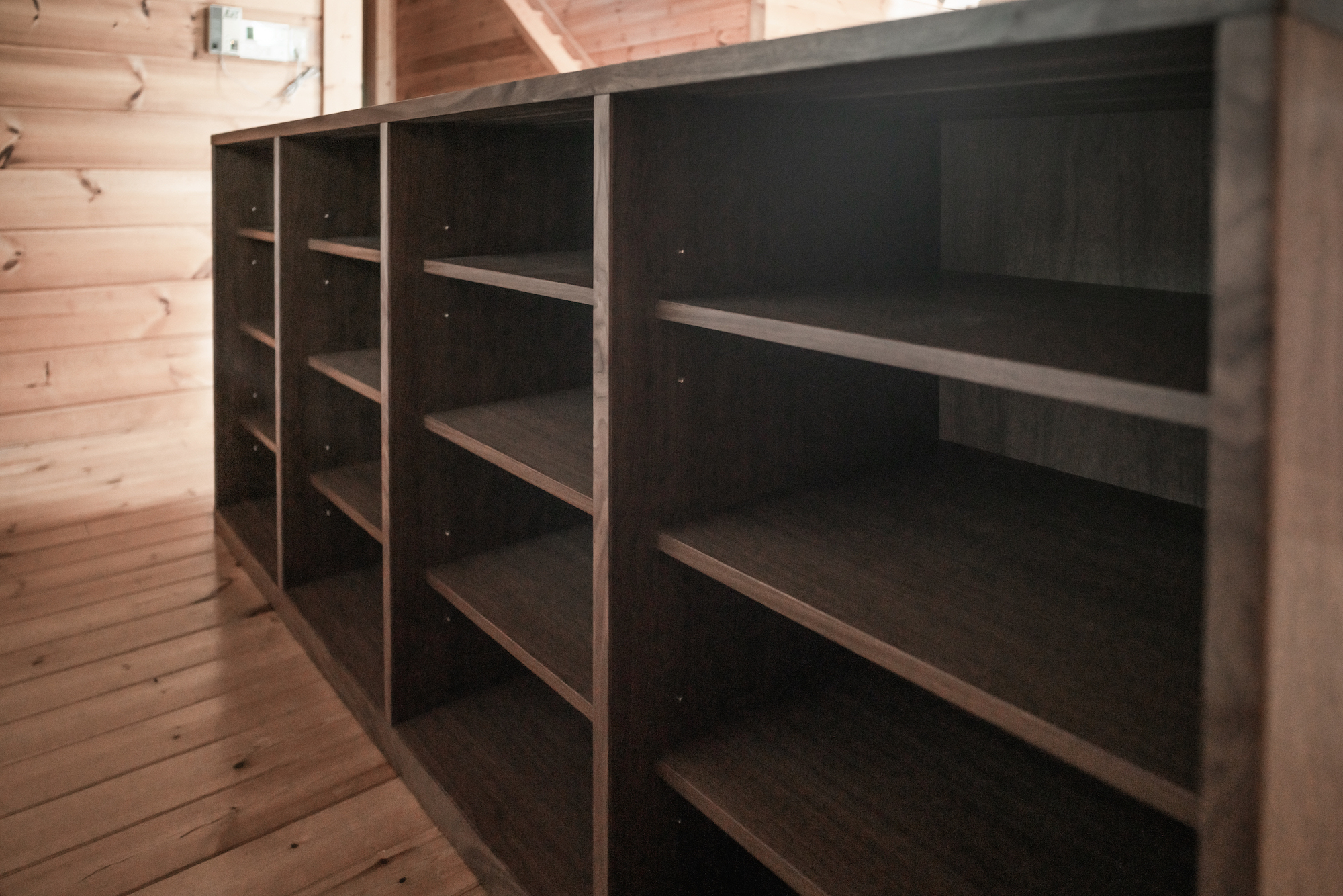 ブラックウォールナット無垢材のオーダーキャビネットをお届けしました。幅2000ミリの大型サイズで、内部は全て棚板仕様にてご用意いたしました。天板は作業スペースも兼ねており、シンプルながら機能的なキャビネットに仕上がりました。