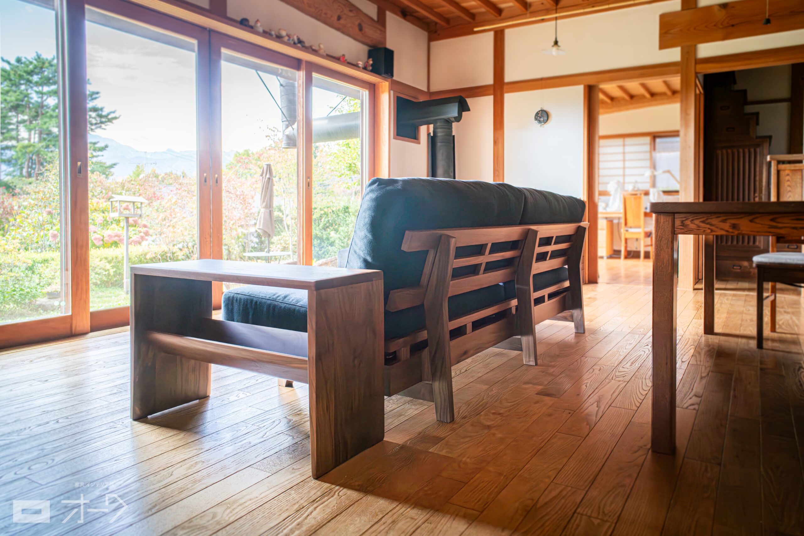ブラックウォールナット無垢材のソファをお届けしました。肘なしタイプで省スペースながら、厚みのある低反発クッション&無垢材をふんだんに使ったフレームはボリューム感はたっぷりです。オットマンも合わせてお選びいただき、素敵なお庭を眺めながら時間を忘れてくつろげる空間に仕上がりました。
