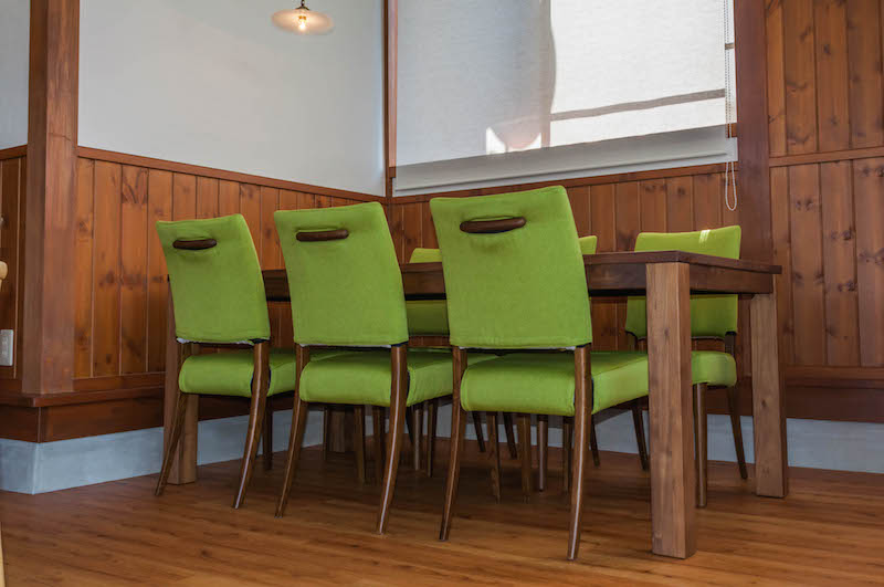 10月1日にリニューアルオープンされる南アルプス市のふたば食堂様に、テーブルと椅子、ランプをお届けしました。