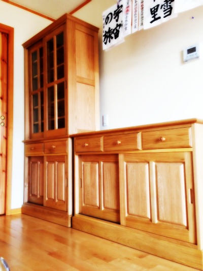 ナラ無垢材の食器棚とカウンターをお届けしました。
