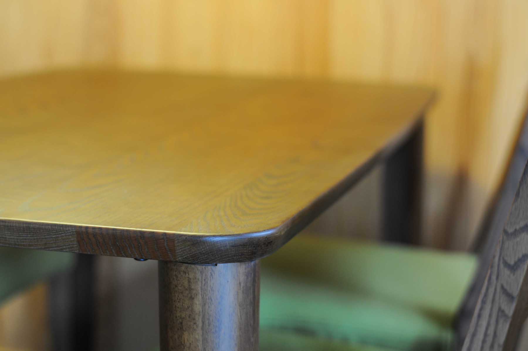 テーブルの天板は面取りを施して、角を丸く取っています。無垢材の硬い質感を和らげて、優しい印象になりました。