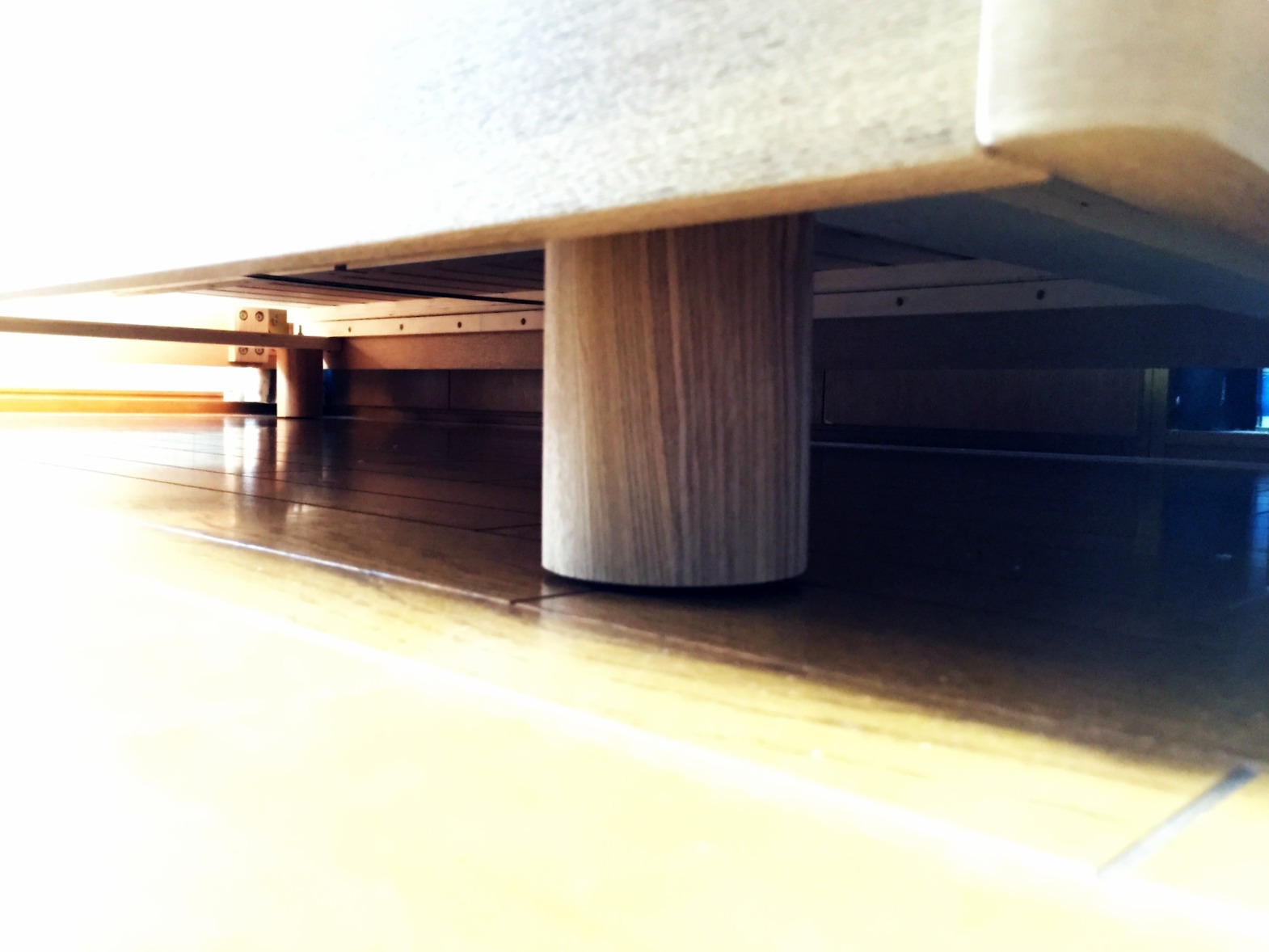 脚部にも贅沢に無垢材をしています。 継ぎ脚をすれば高さ調整も可能なのが嬉しい造りです♪