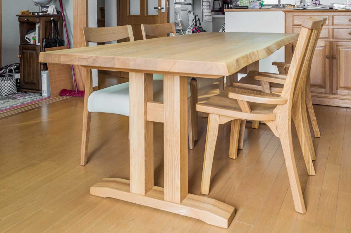 タモ(アッシュ)無垢材のダイニングセットをお届けしました。