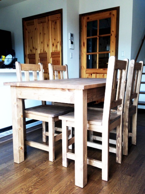 塗装はオスモオイルのウォルナット色、合わせるのは椅子が4脚という事でシックな雰囲気にキマってます☆