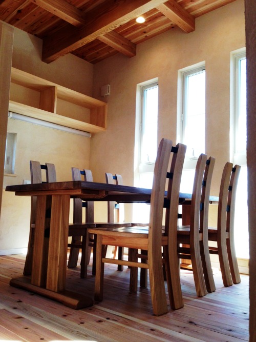 “木の雰囲気”にこだわったインテリアと、6人掛けの大きな無垢材天板の重厚さがどんぴしゃりですね!!