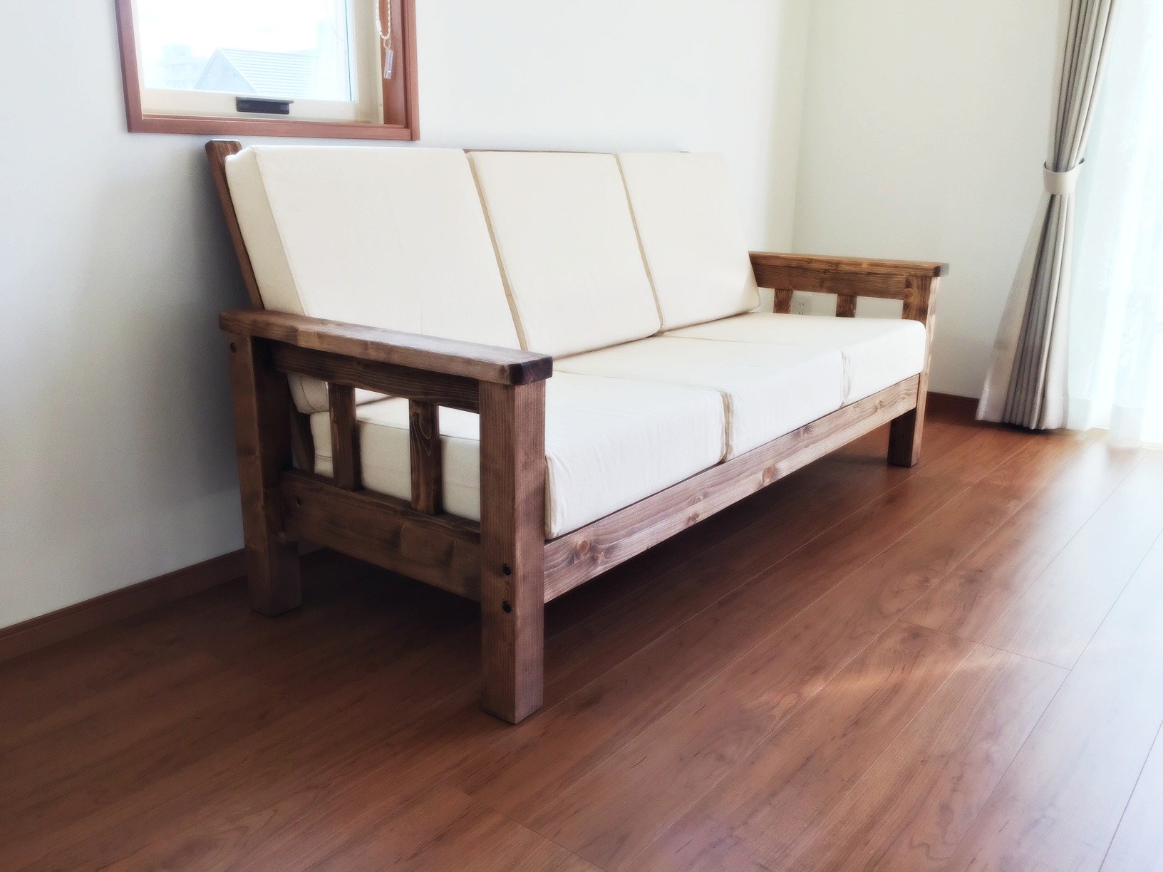 明るい壁紙とシックな色合いのフローリングに、ダークウォールナット×オフホワイトの組み合わせが良く似合います♪