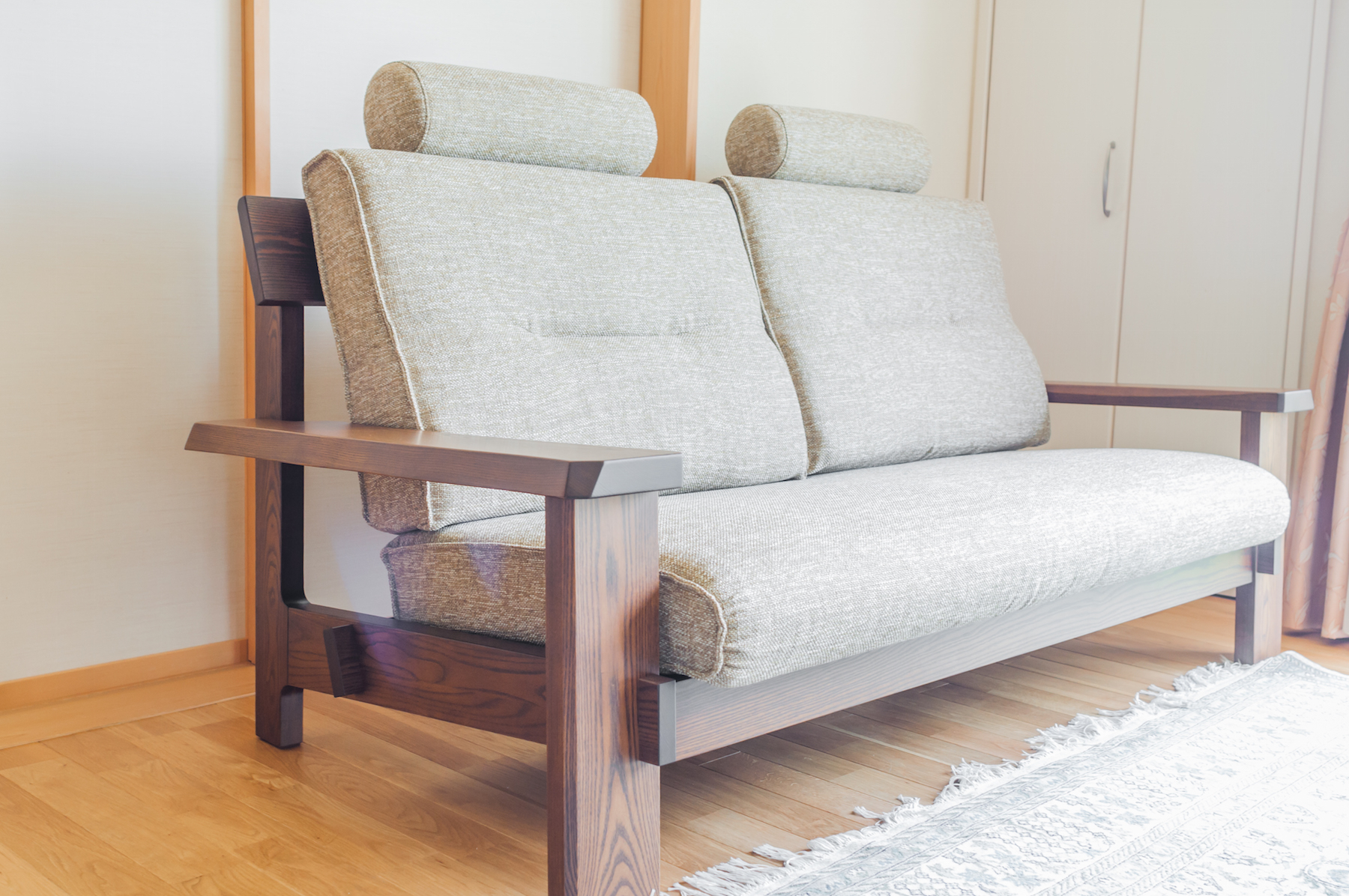 タモ(アッシュ)無垢材のフレームを使ったソファをお届けしました。