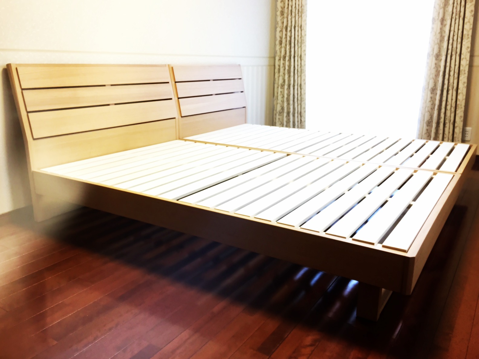 タモ(アッシュ)材のベッドをお届けしました。