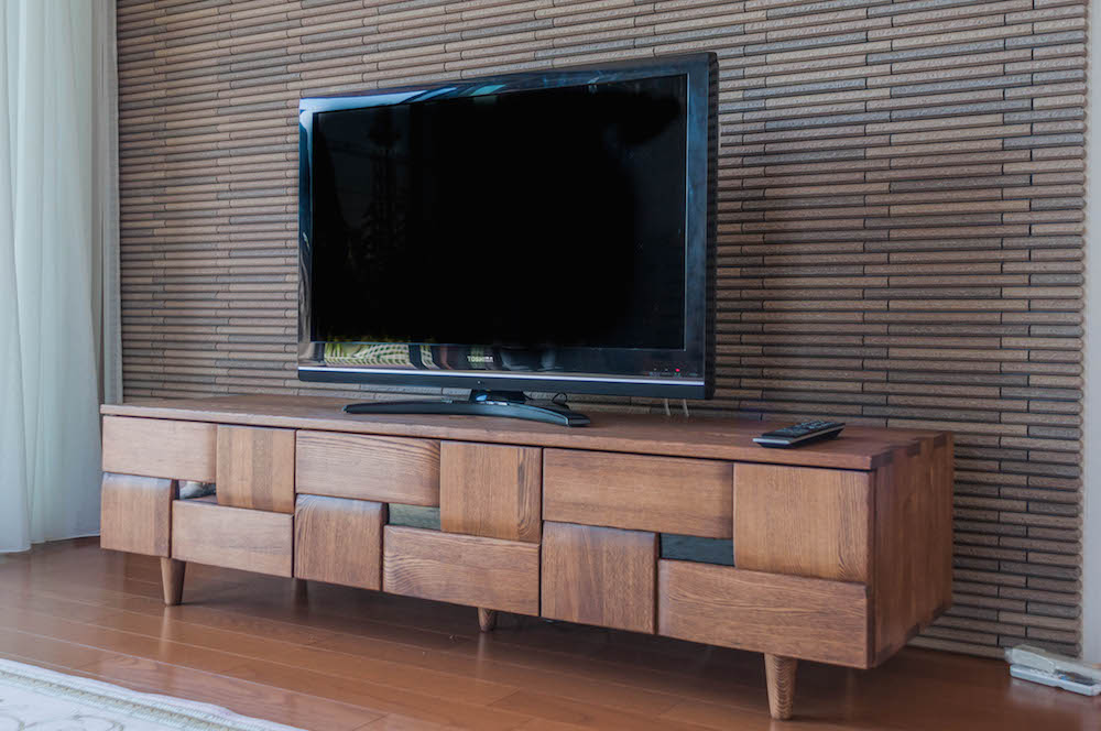 タモ(アッシュ)無垢材のテレビボードをお届けしました。