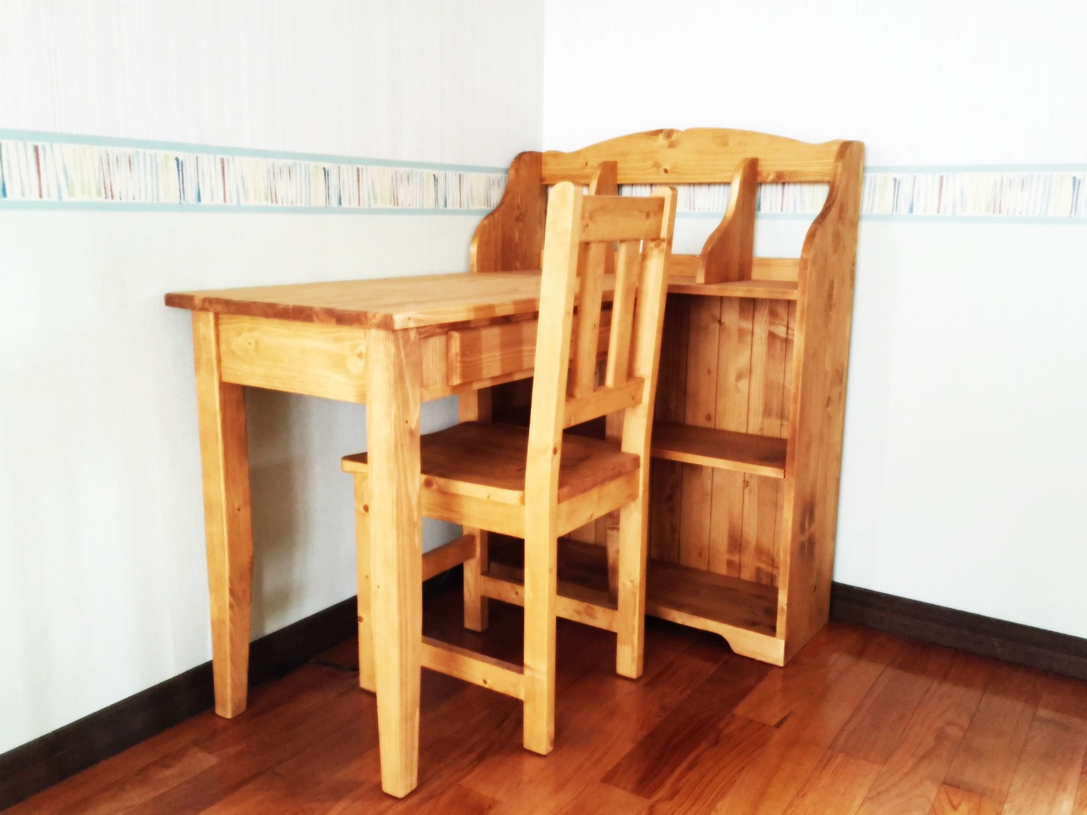 パイン無垢材の学習デスクセットをお届けしました。