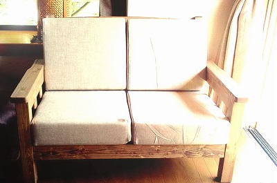 パイン無垢材の2人掛けソファをお届けしました。
