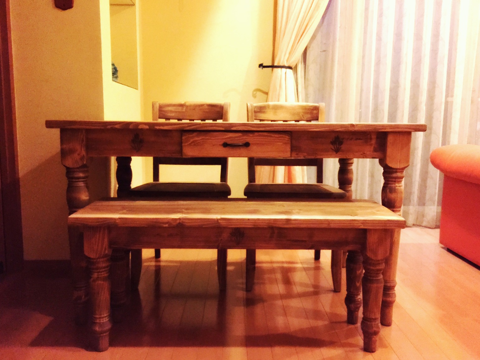 パイン無垢材のダイニングセットをお届けしました。