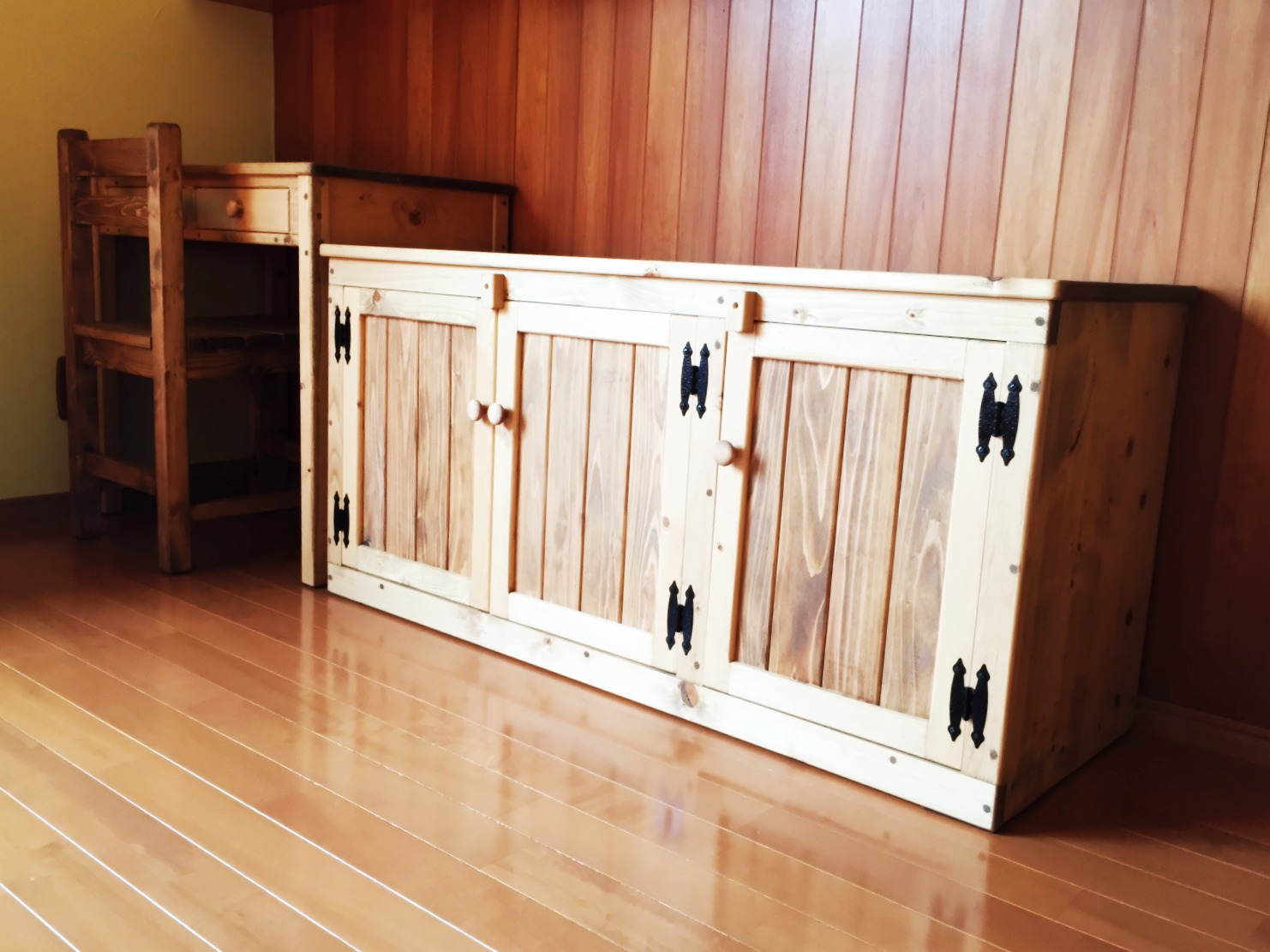 パイン無垢材のオーダー収納家具をお届けしました。