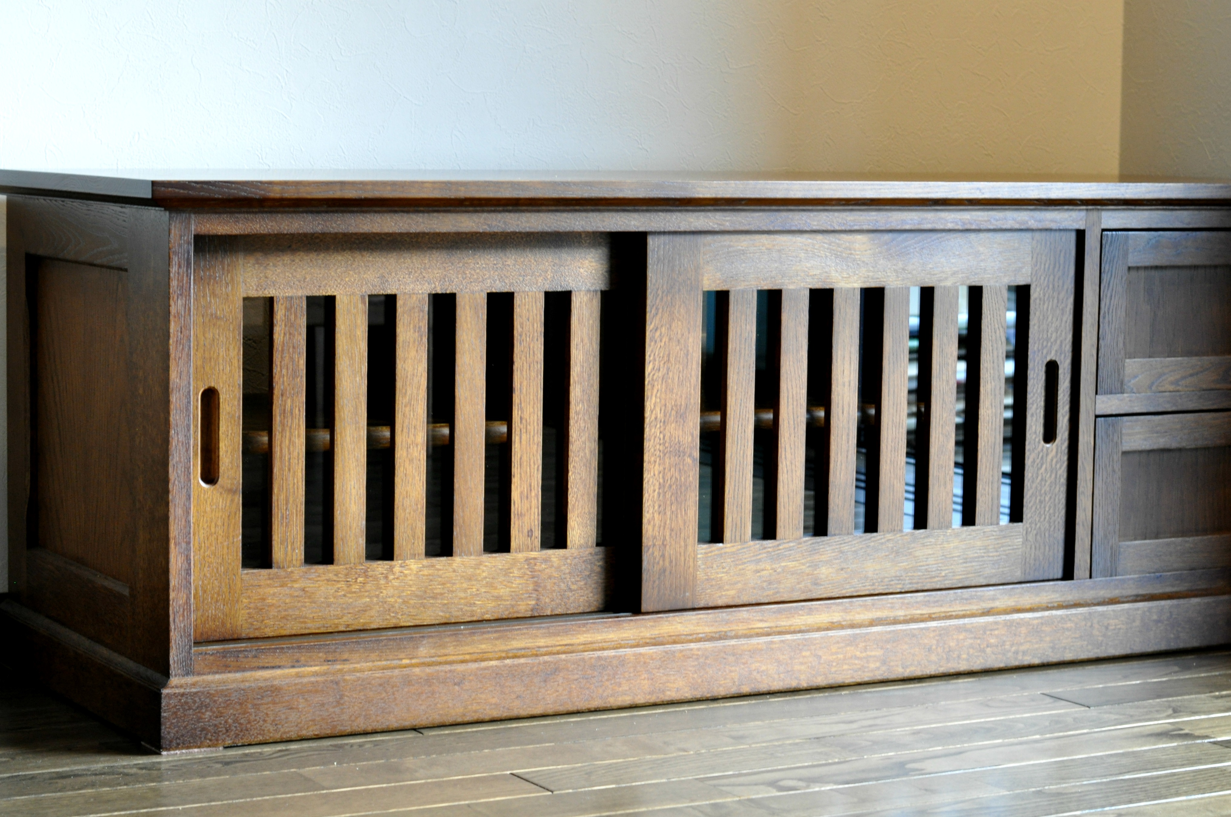 “水屋”と呼ばれるシックな造りが特徴的なテレビボードです。