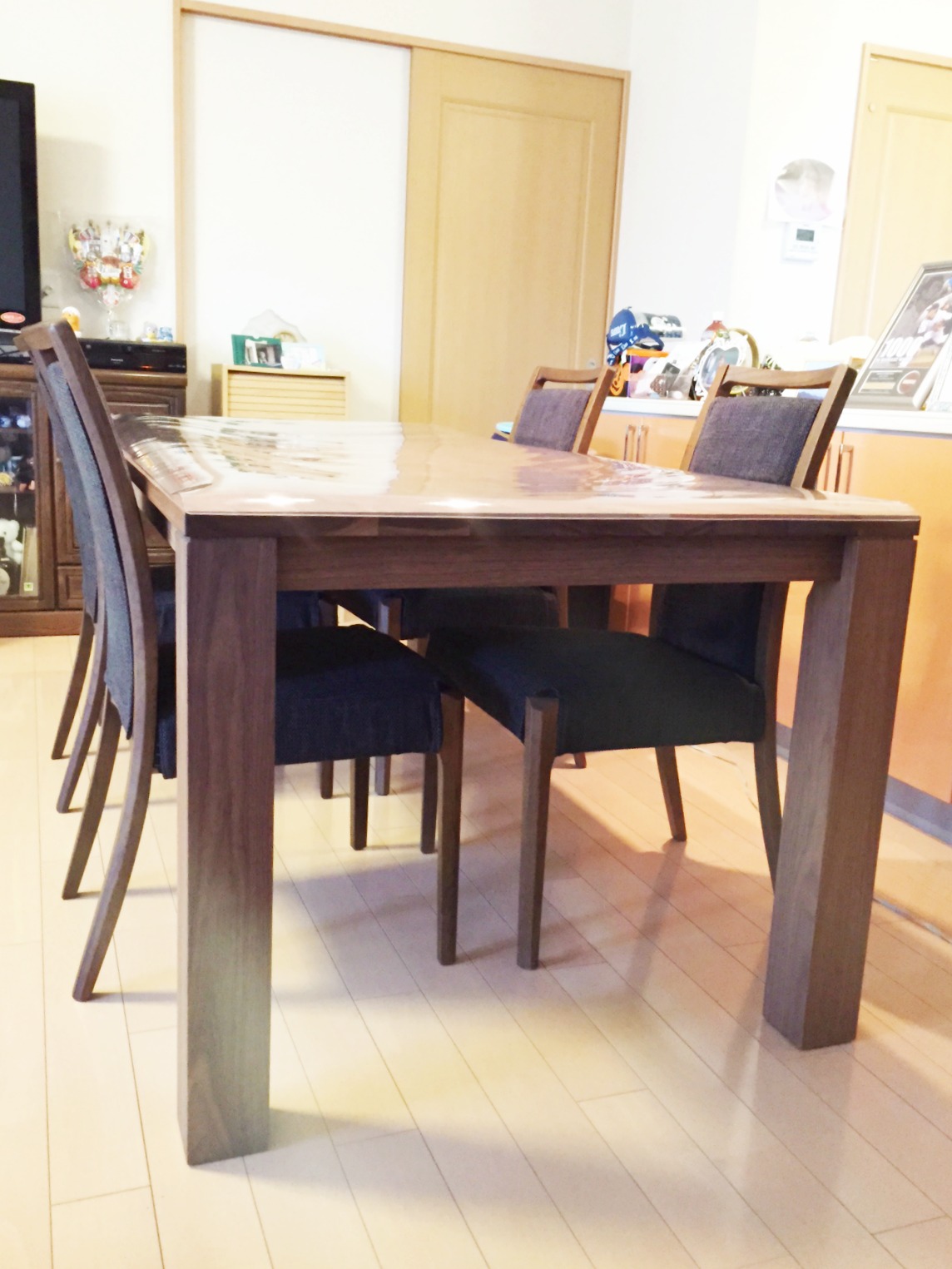 ブラックウォールナット無垢材のダイニングセットをお届けしました。