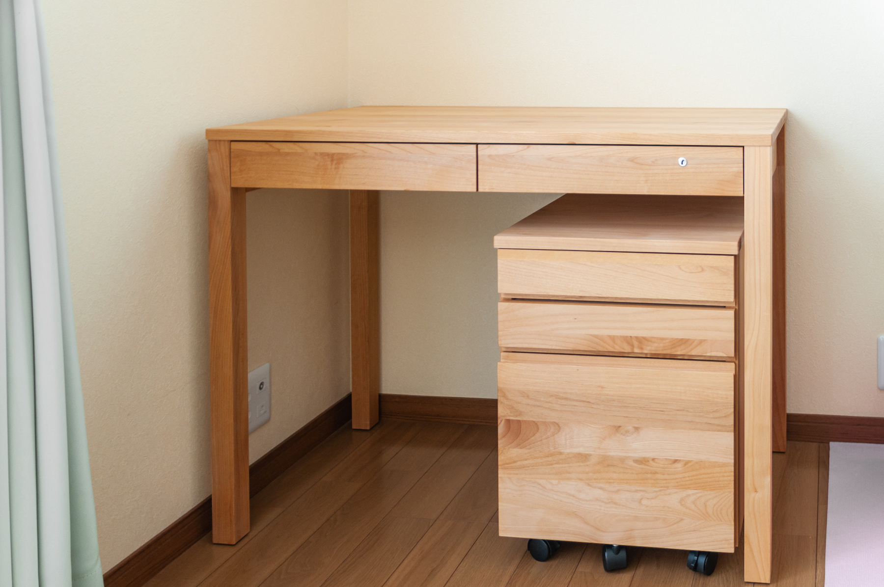 アルダー無垢材の学習デスクをお届けしました。 大人でも使える、とてもシンプルなデザインです。シャキッとした直線のデザインは、質感の良さが際立ちますね!末長くご愛用いただけることと思います。