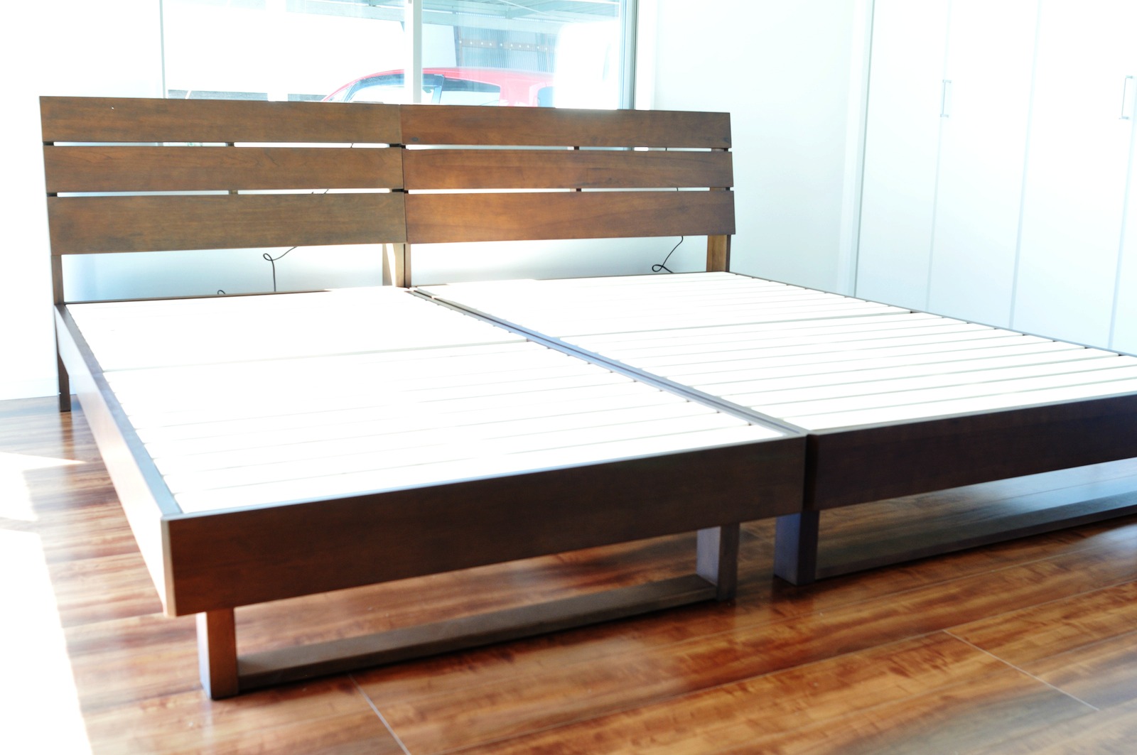 セミダブル&シングルサイズを並べて置いて、とてもゆったりしたベッドスペースになりました☆
