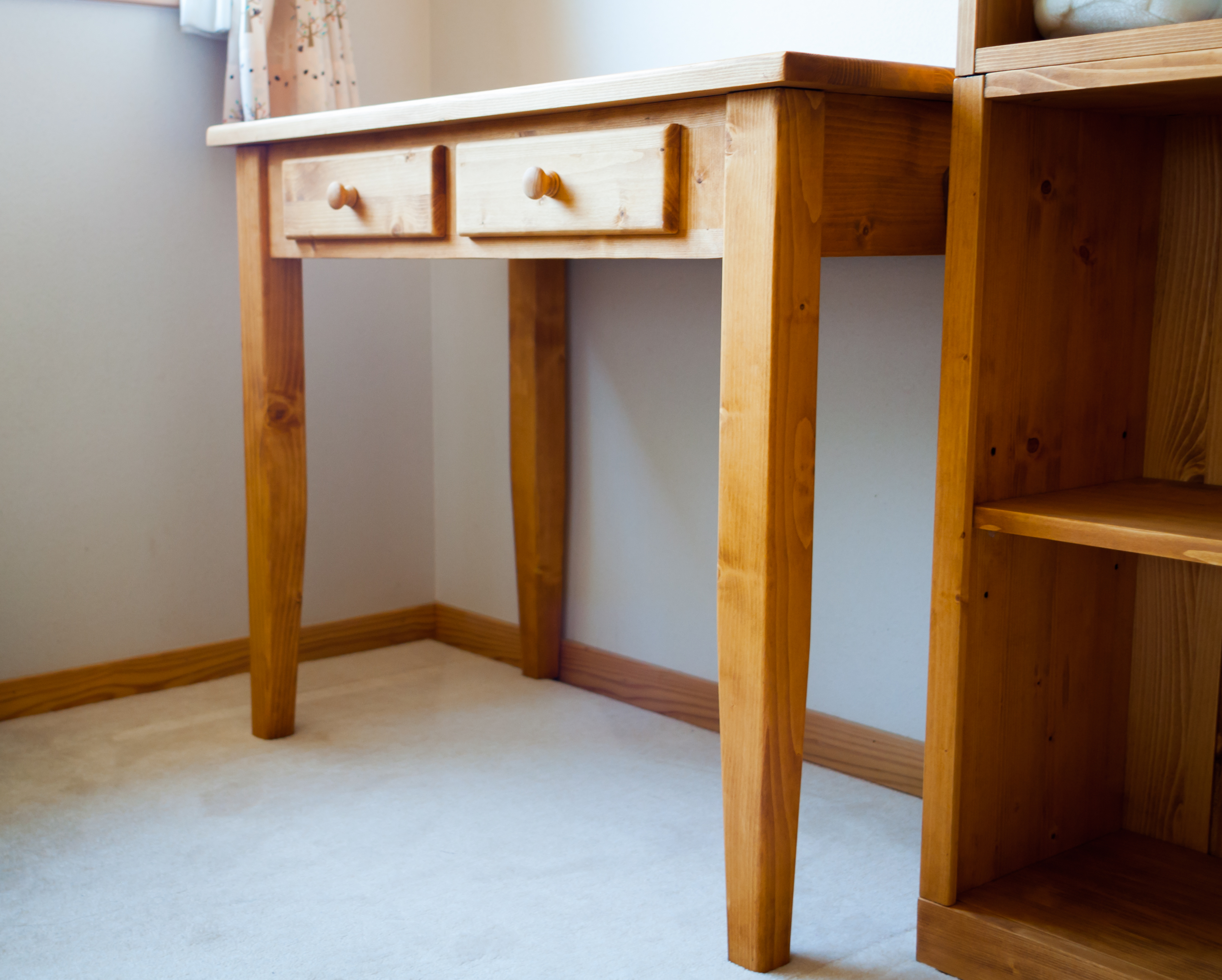 シンプルながらしっかりした造りで、大人になっても楽しめる本格デスクです☆