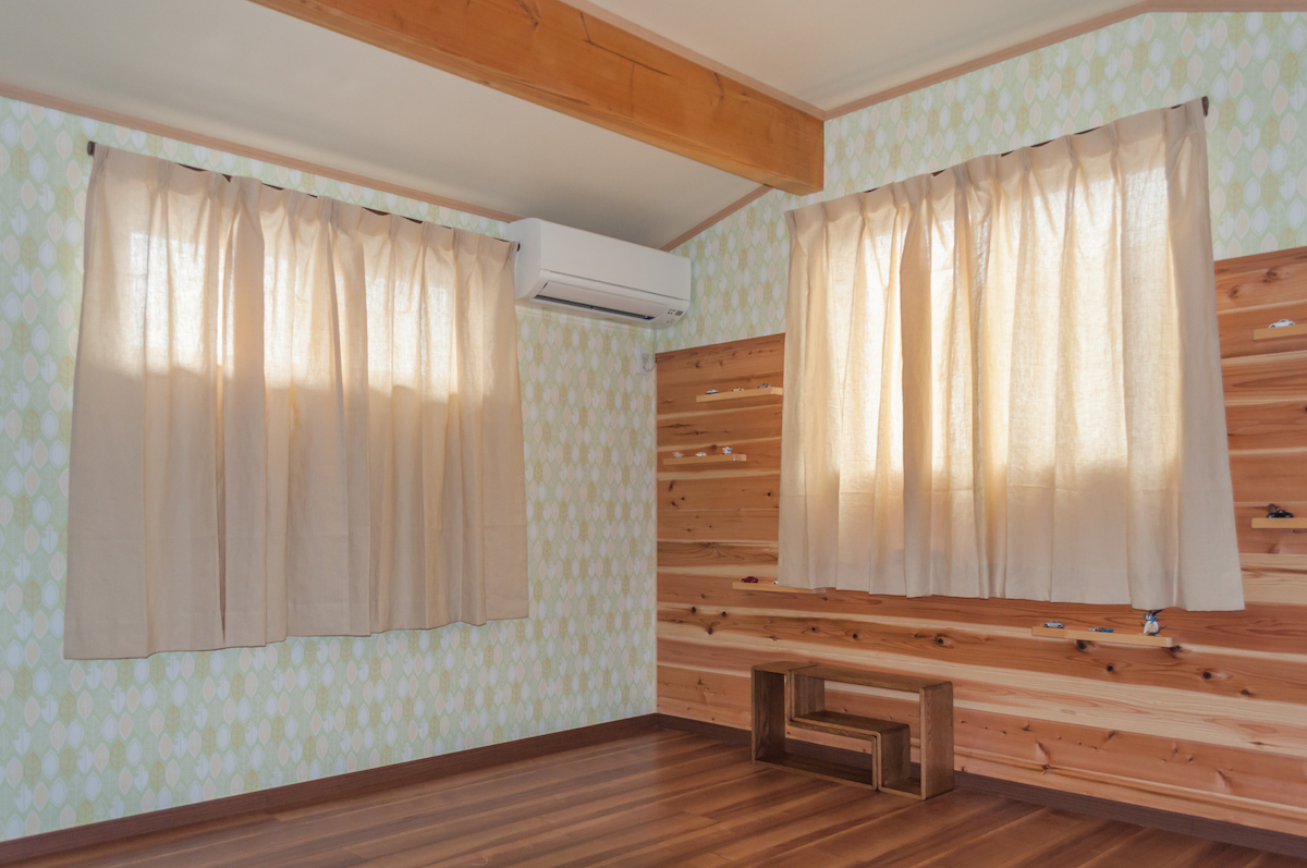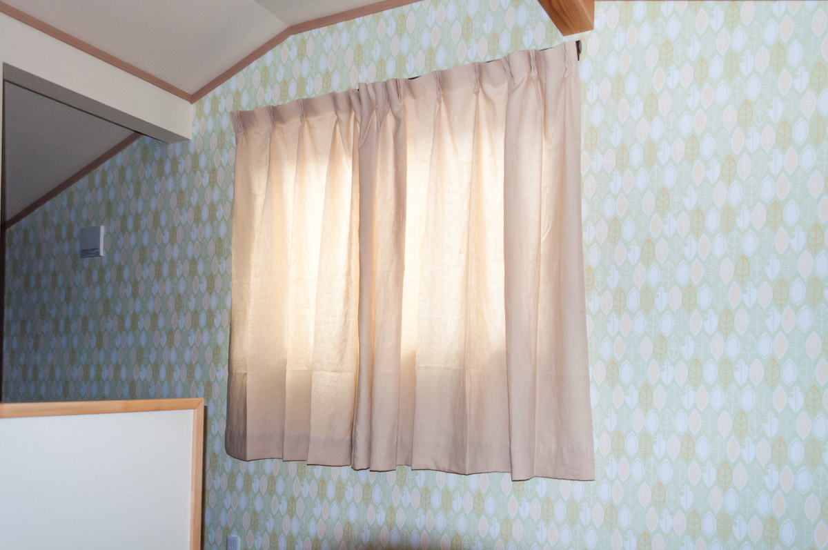 光が透けた感じは、やはり天然素材ならでは。ベーシックな色を選んでいただいても、素材の表情で十分に楽しめるのが魅力です。腰壁の無垢材とも相まって、ナチュラルで落ち着く空間に仕上がりました!