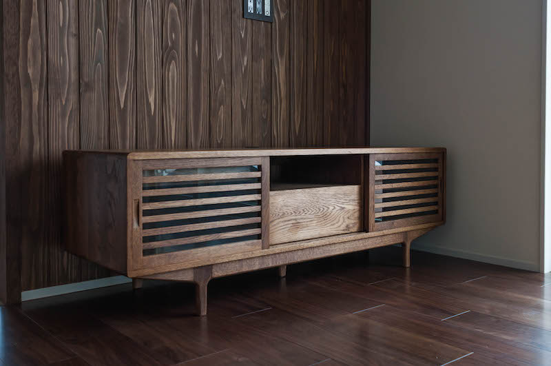 ナラ(オーク)無垢材のテレビボードをお届けしました。