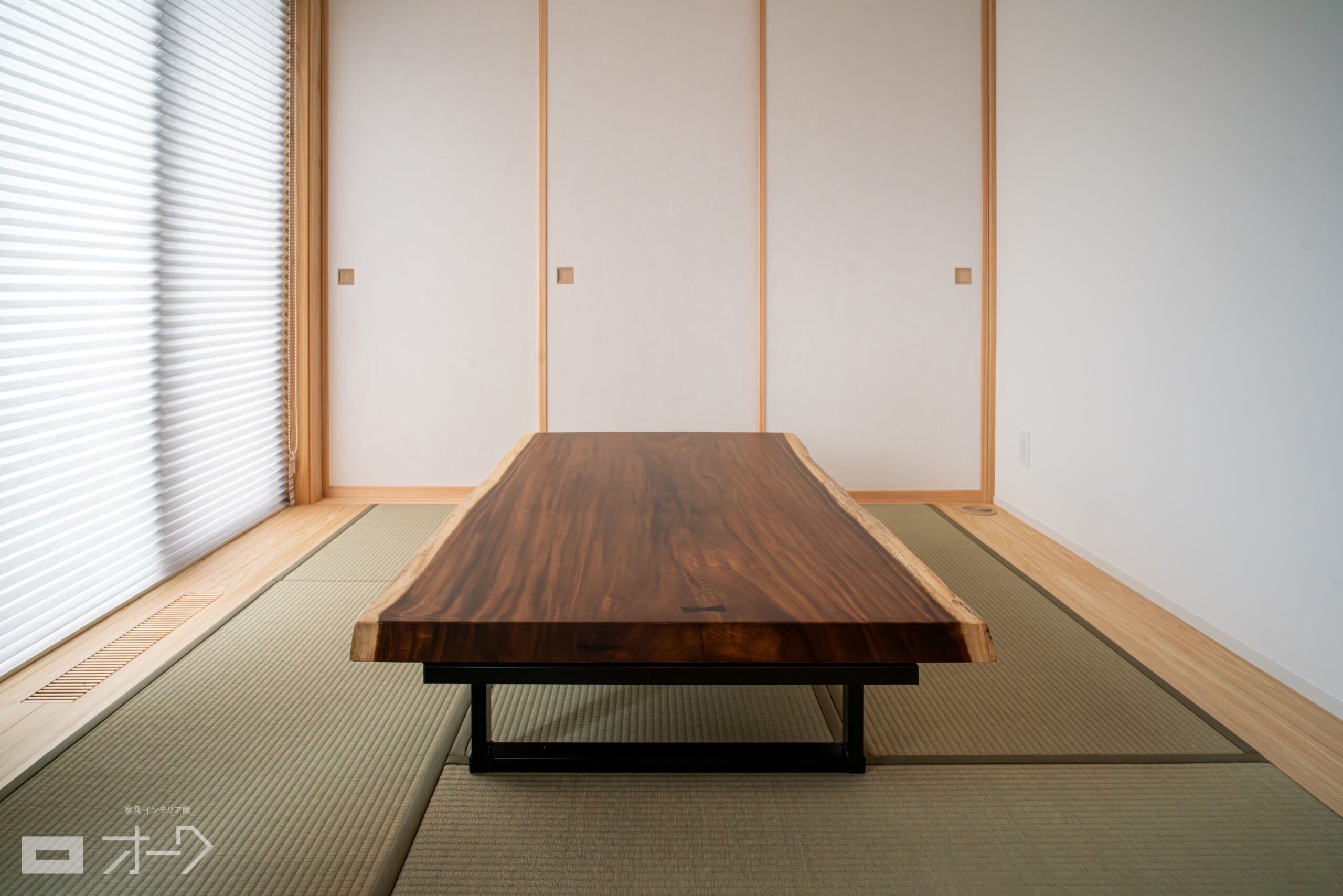 モンキーポッド一枚板の座卓をお届けしました。お子様が小さいうちは和室で座卓としてお使いいただき、成長されたあとは脚を立ててダイニングテーブルとしてお使いいただく予定です。ハワイを中心とした南国原産の樹種ですが、不思議と和室の雰囲気にもよく似合います。