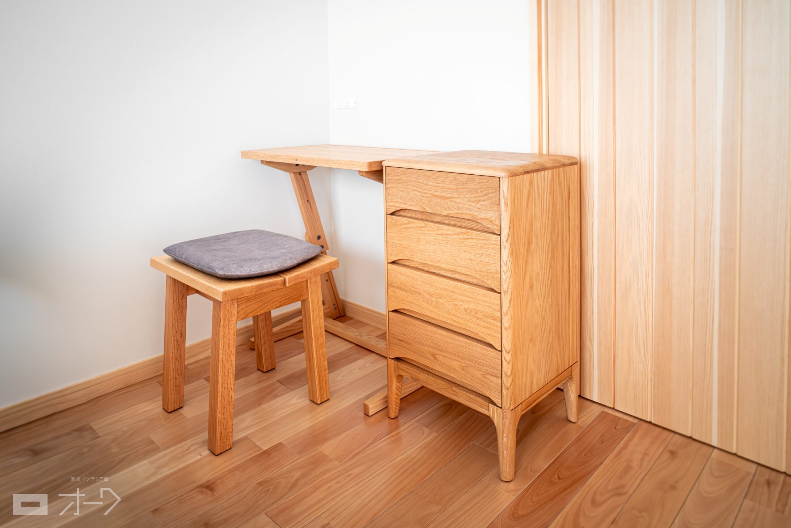 オーク(ナラ)無垢材のデスクセットをお届けしました。淡い色合いと滑らかな木肌が特長的な、やさしい印象に仕上がったデスクです。サイドキャビネットも合わせてお選びいただき、大人向けの作業デスクとして活躍してもらえる組み合わせになりました。