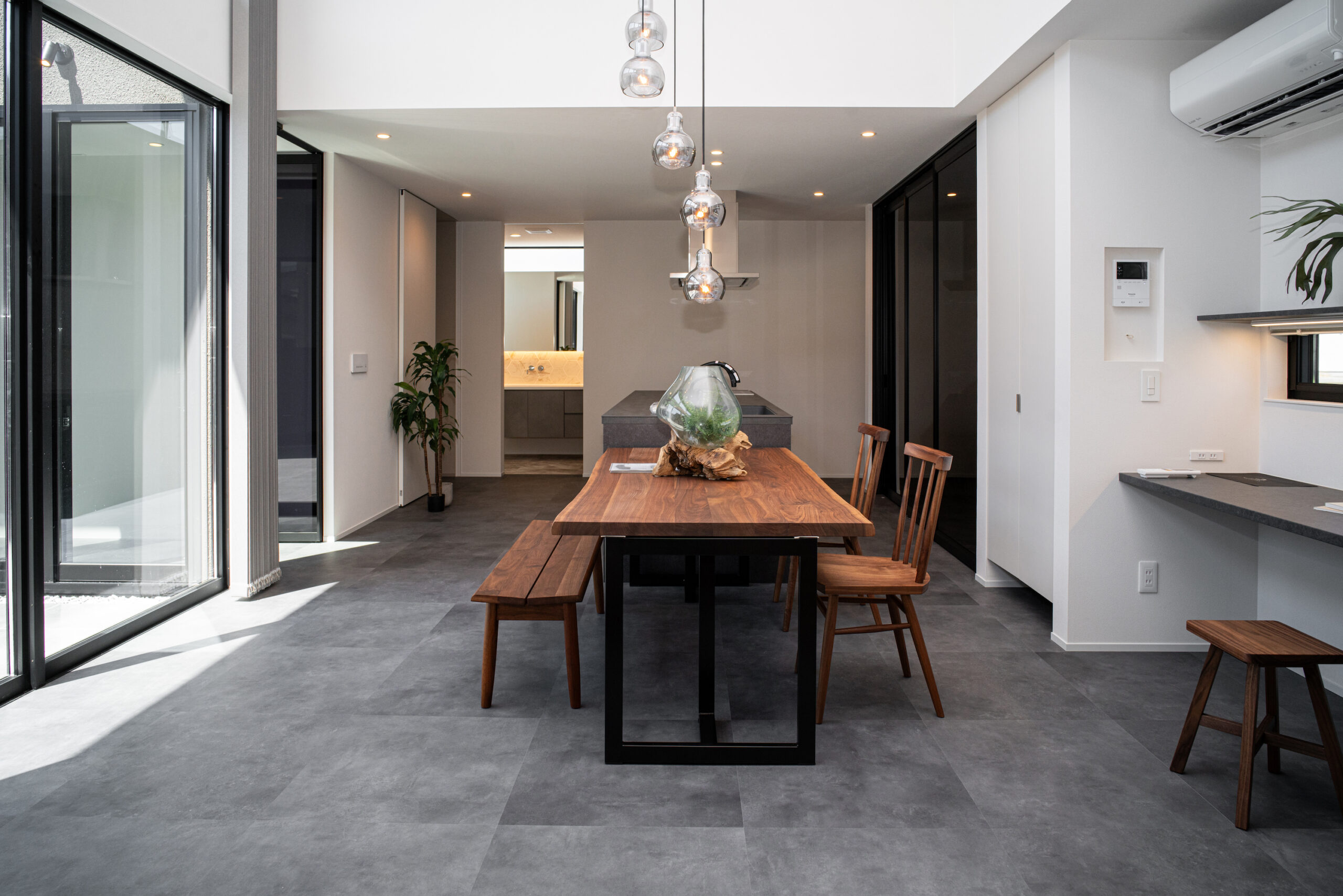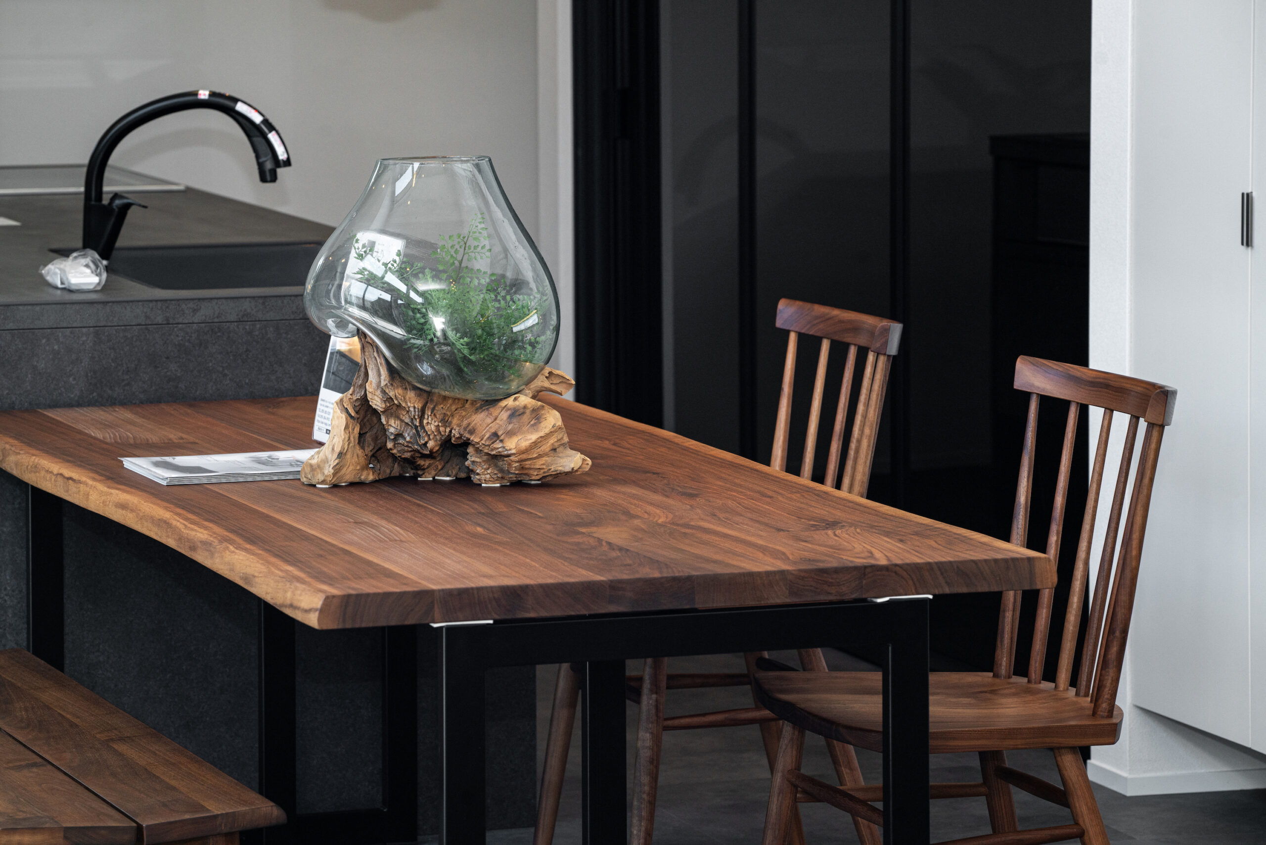 昭和町にて開催された住宅完成見学会の家具展示にて協力いたしました。セラミックやモルタル、ガラスといったクールな印象のインテリアと、ブラックウォールナット無垢材の自然な表情が素晴らしいコントラストを生み出しています。ご来場いただいた皆様、誠にありがとうございました。またお会いできることを楽しみにしております。