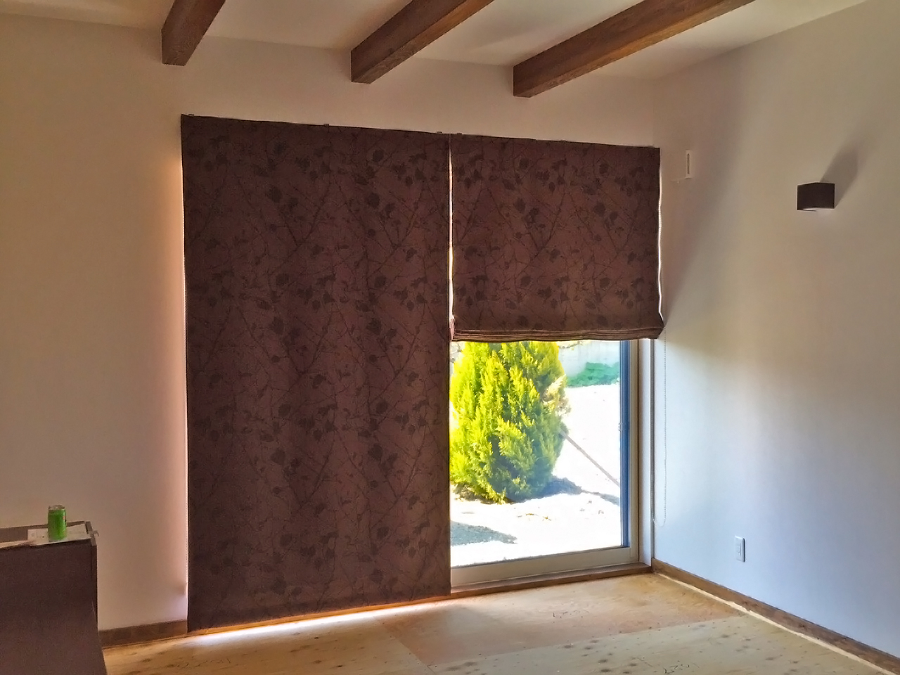 シェードと同じ生地でダイニングルームのカーテンも製作しました。