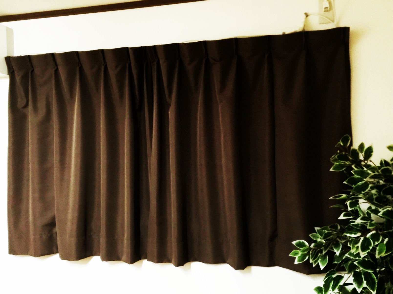 カーテンの掛け替えに伺いました☆ 遮光カーテンほどではなく、夜は通りの明かりが入らない程度の素材ということで、ダークブラウンの厚手の生地をお選び頂きました。