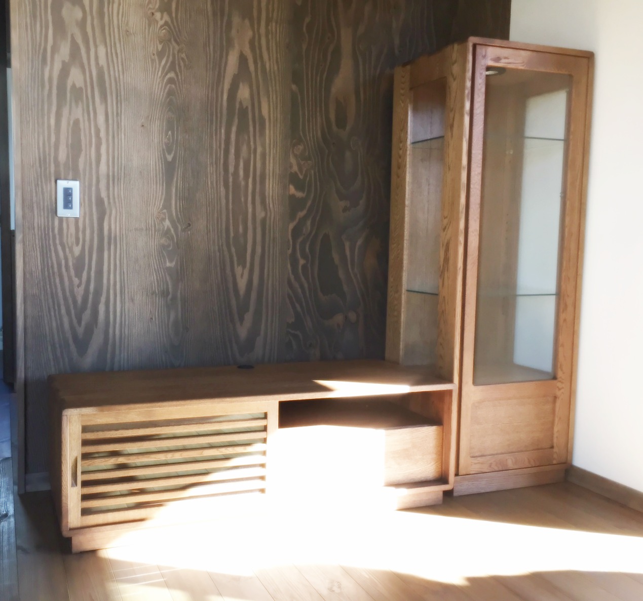 ナラ無垢材のテレビ台とキュリオケースをお届けしました。