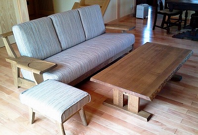 タモ無垢材のセンターテーブルとソファをお届けしました。