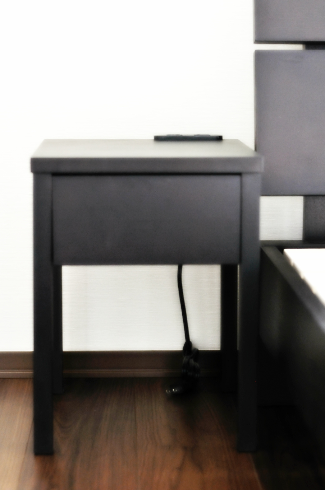 コンセントもついているので、就寝時に細々したものを置いておくのにも便利です☆