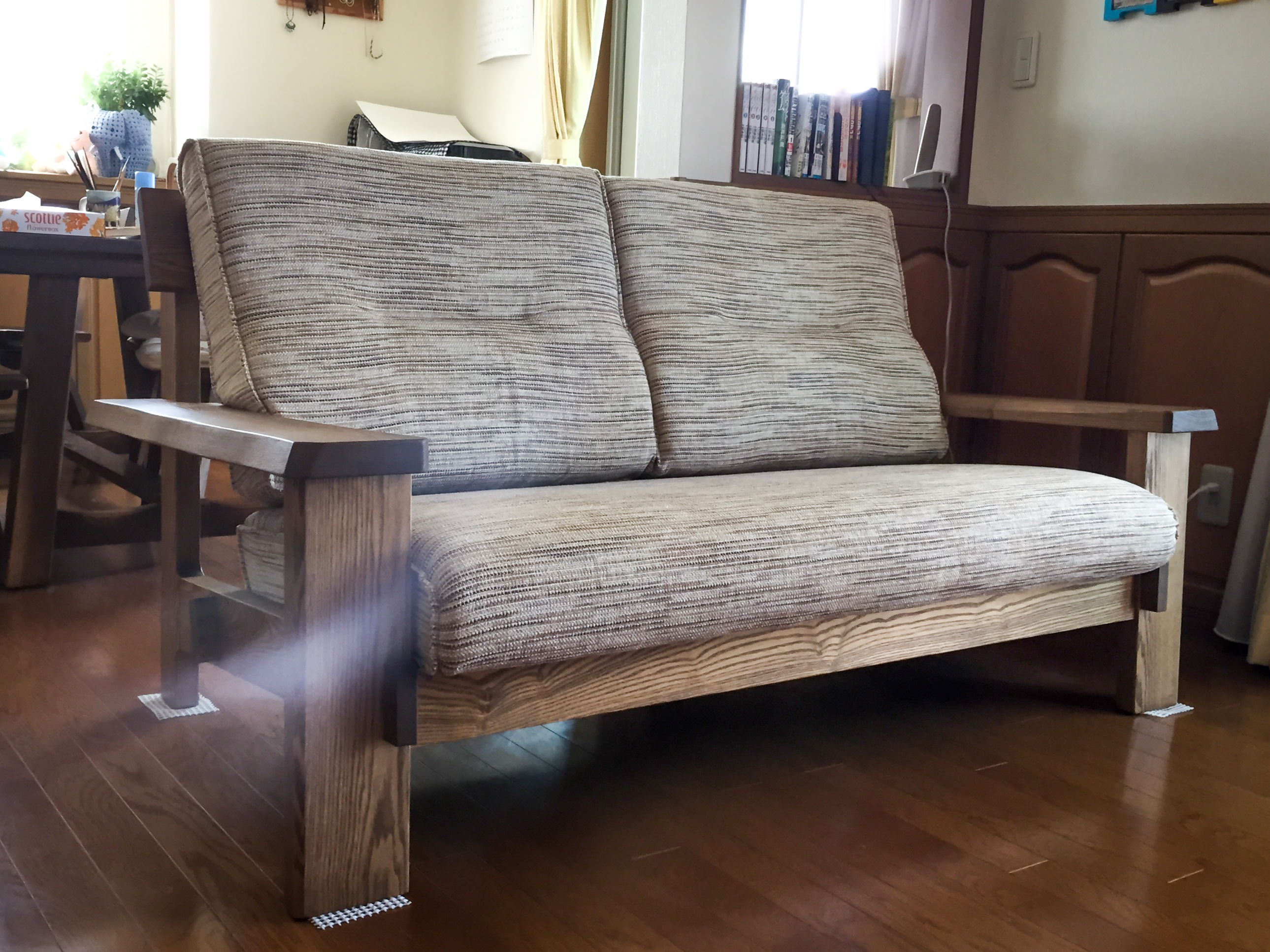 タモ(アッシュ)無垢材フレームのソファをお届けしました。