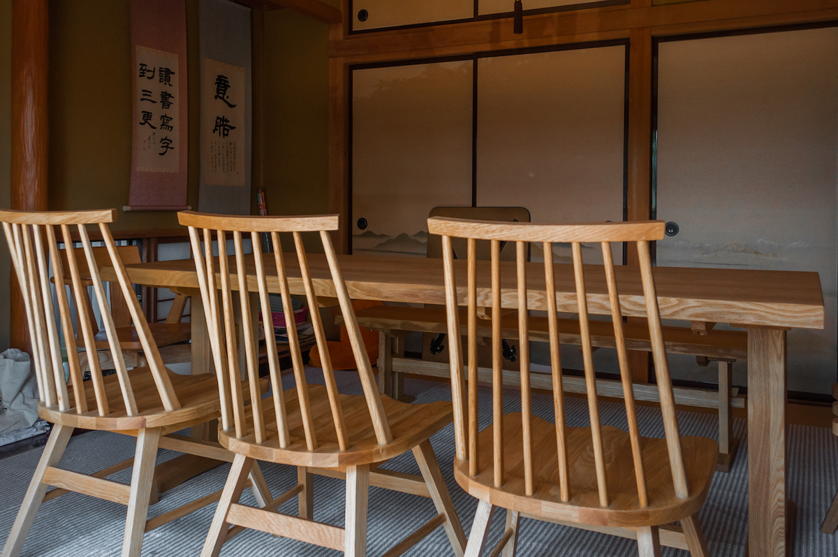 タモ(アッシュ)無垢材のダイニングセットをお届けしました。
