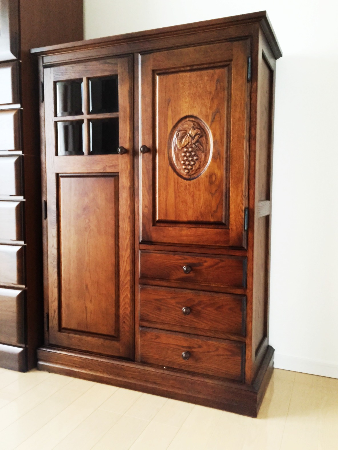 店頭に展示しているキャビネットをもとに、お部屋に合うサイズにオーダーして頂きました☆ 重厚な色遣いが、落ち着いた雰囲気を醸し出していますね♪
