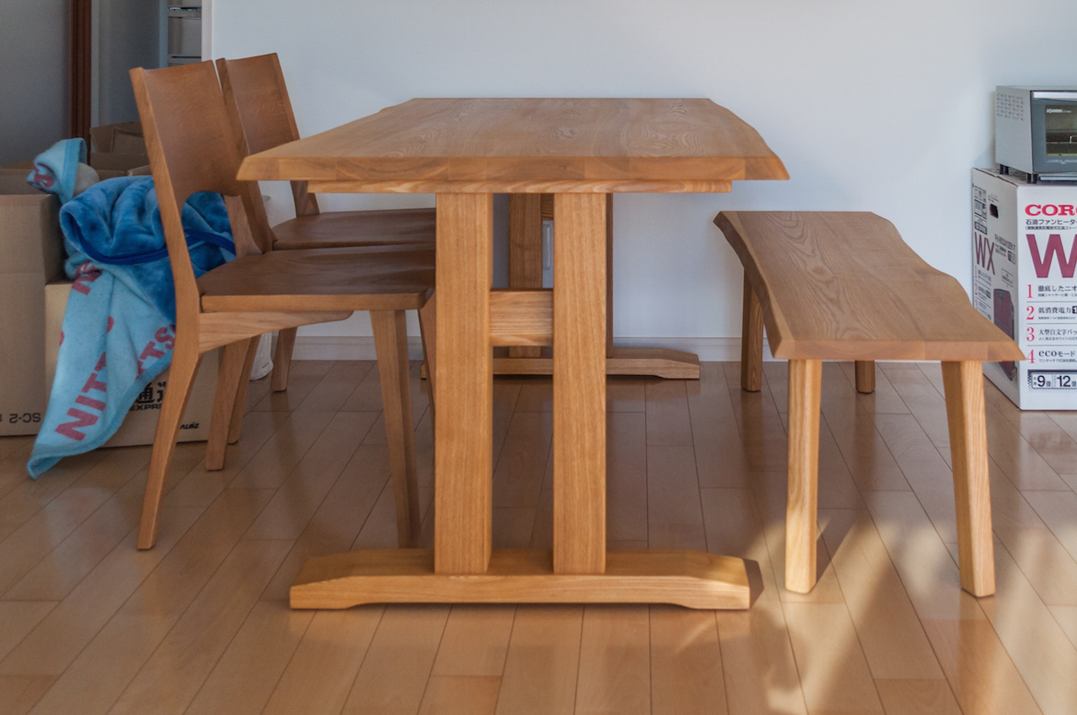 タモ(アッシュ)無垢材のダイニングセットをお届けしました。