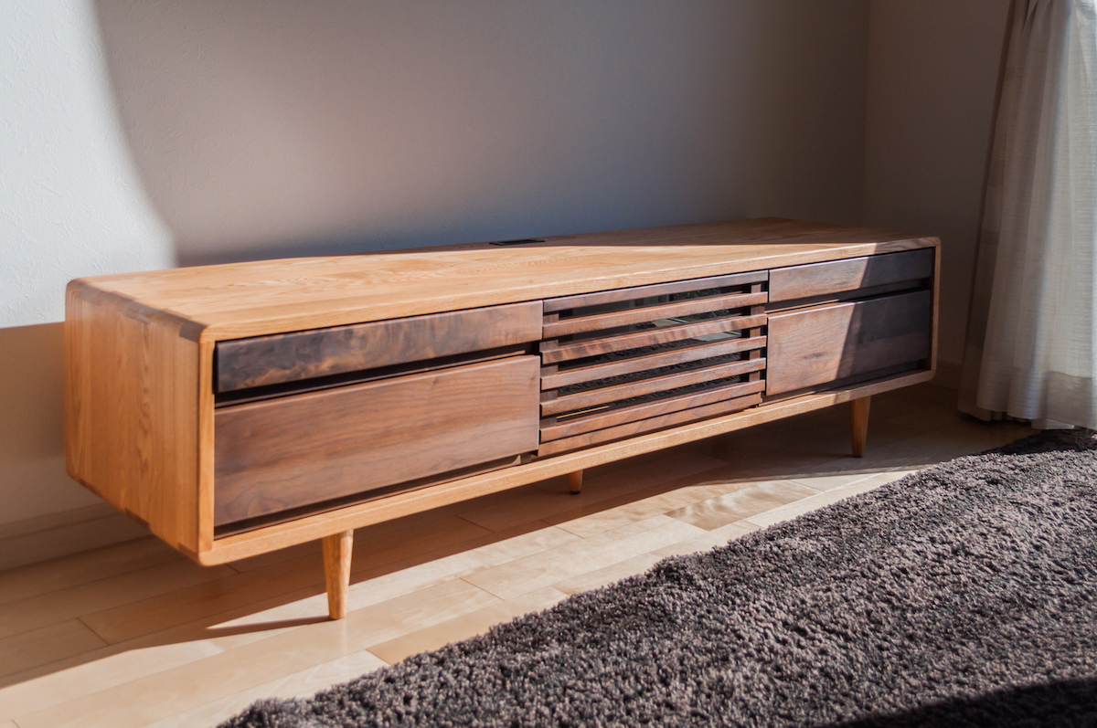 同じく、タモ(アッシュ)材とブラックウォールナット材のTV台です。