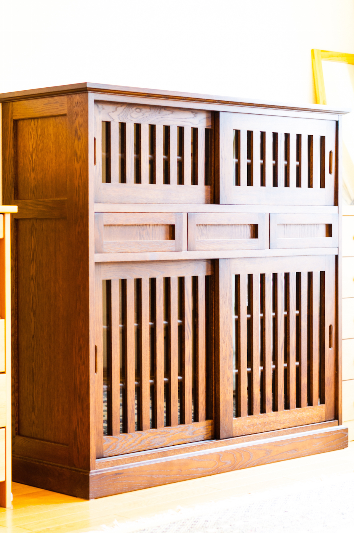 ナラ(ホワイトオーク)無垢材のオーダーキャビネットをお届けしました。