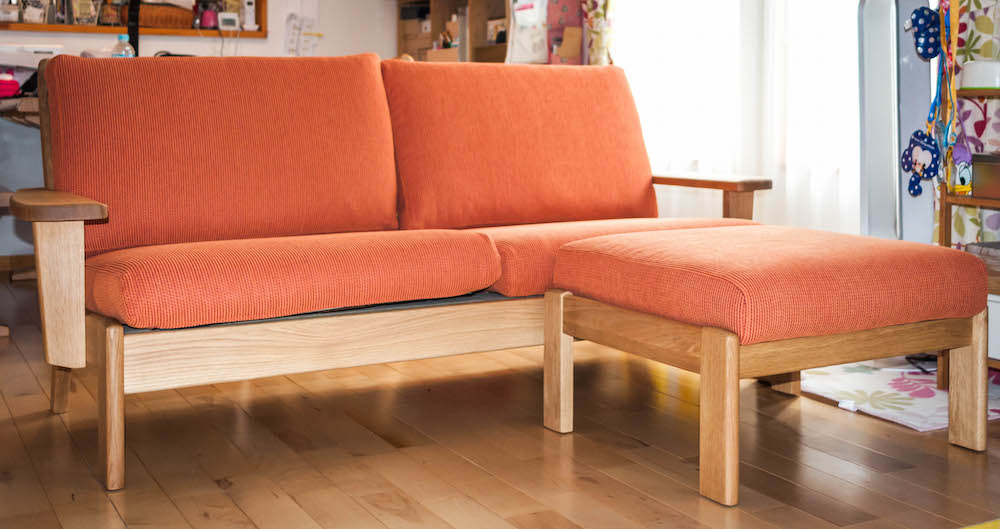 ナラ(オーク)無垢材のソファとスツールをお届けしました。