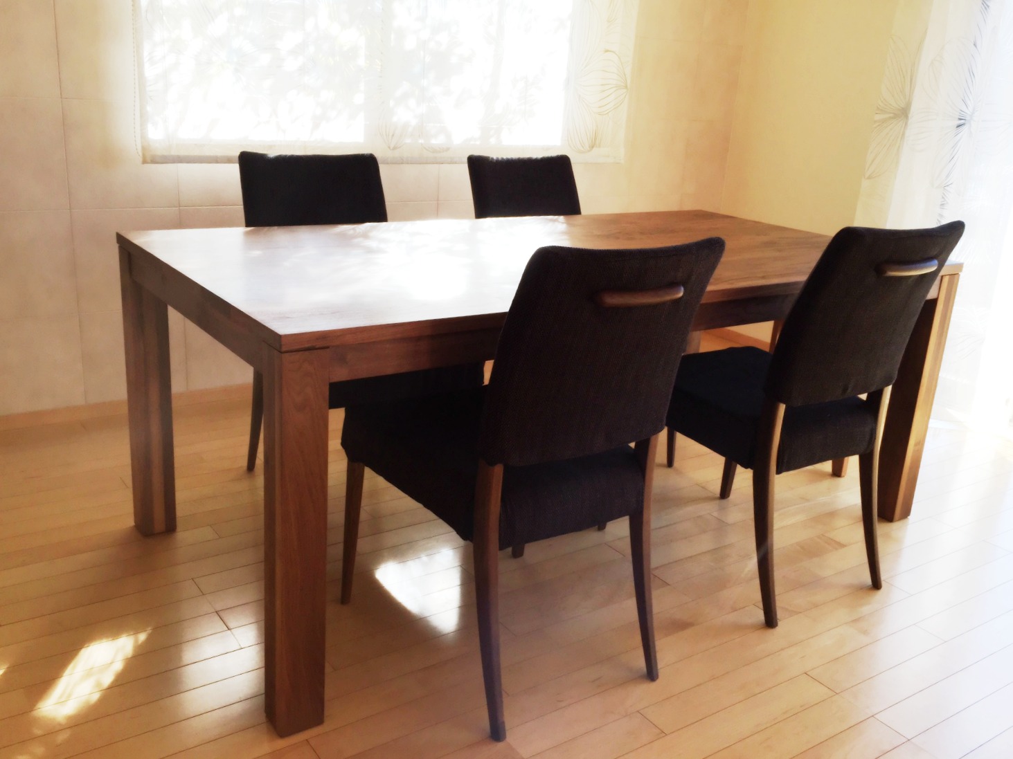 ブラックウォールナット無垢材のダイニングセットをお届けしました。