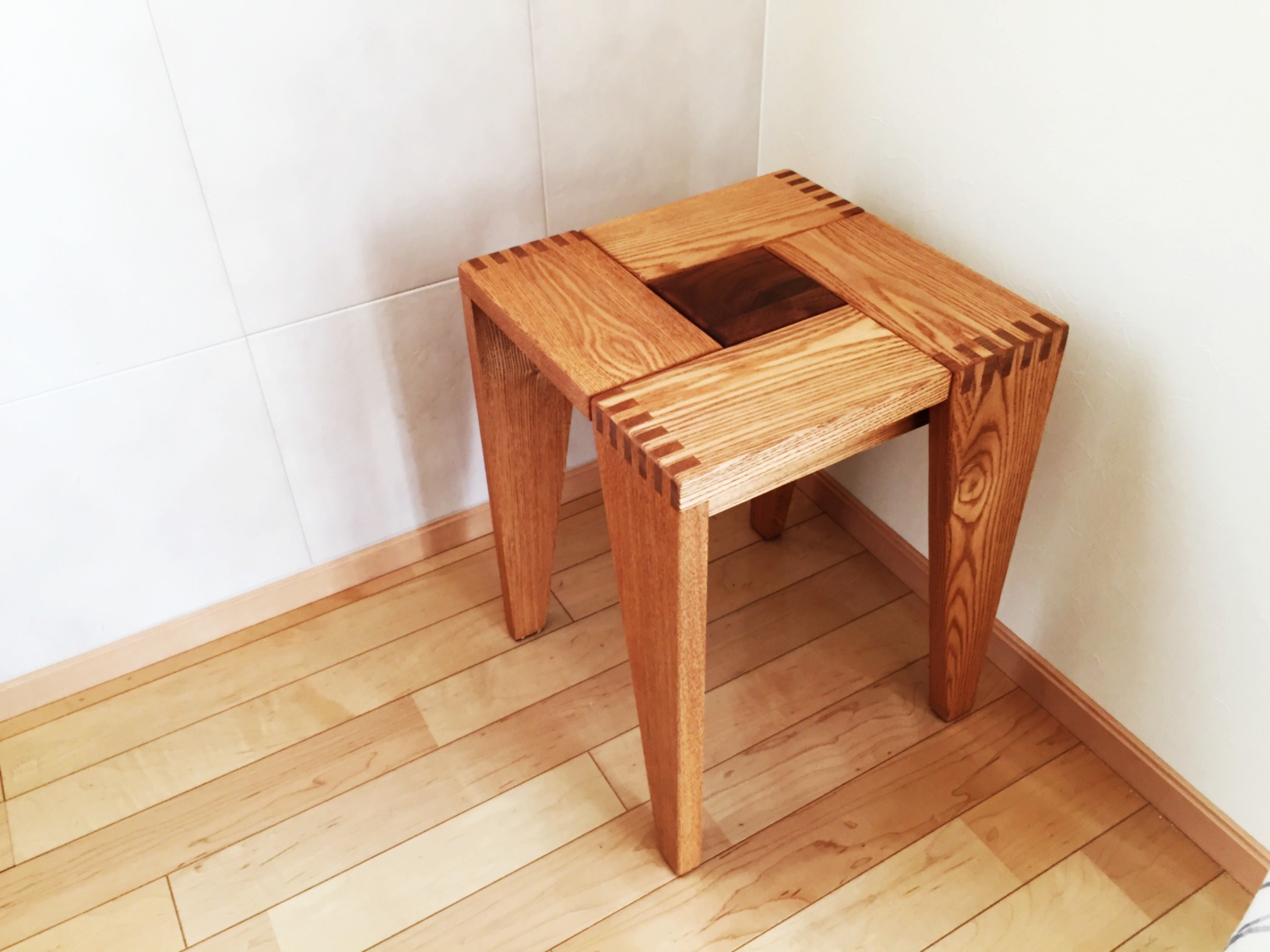 こちらもブラックウォールナット×アッシュ無垢材のスツールです。