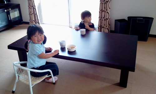 ちょうどお子様たちがお食事中だったので、新しいテーブルで続きを楽しんでいただいているところです♪