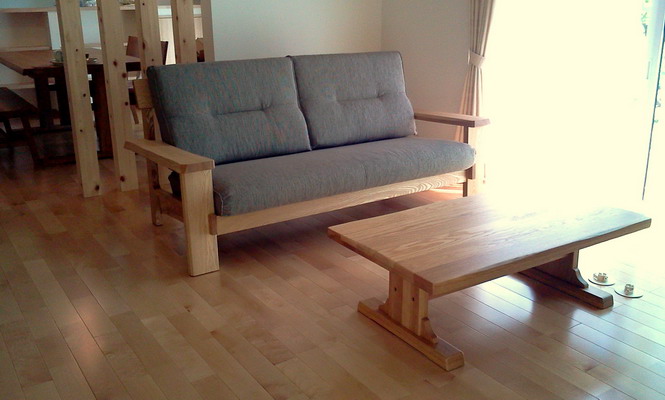 こちらはナラ無垢材のソファとセンターテーブルです。