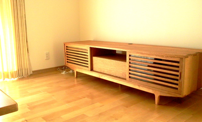 タモ無垢材のモダンな雰囲気のテレビボードです。