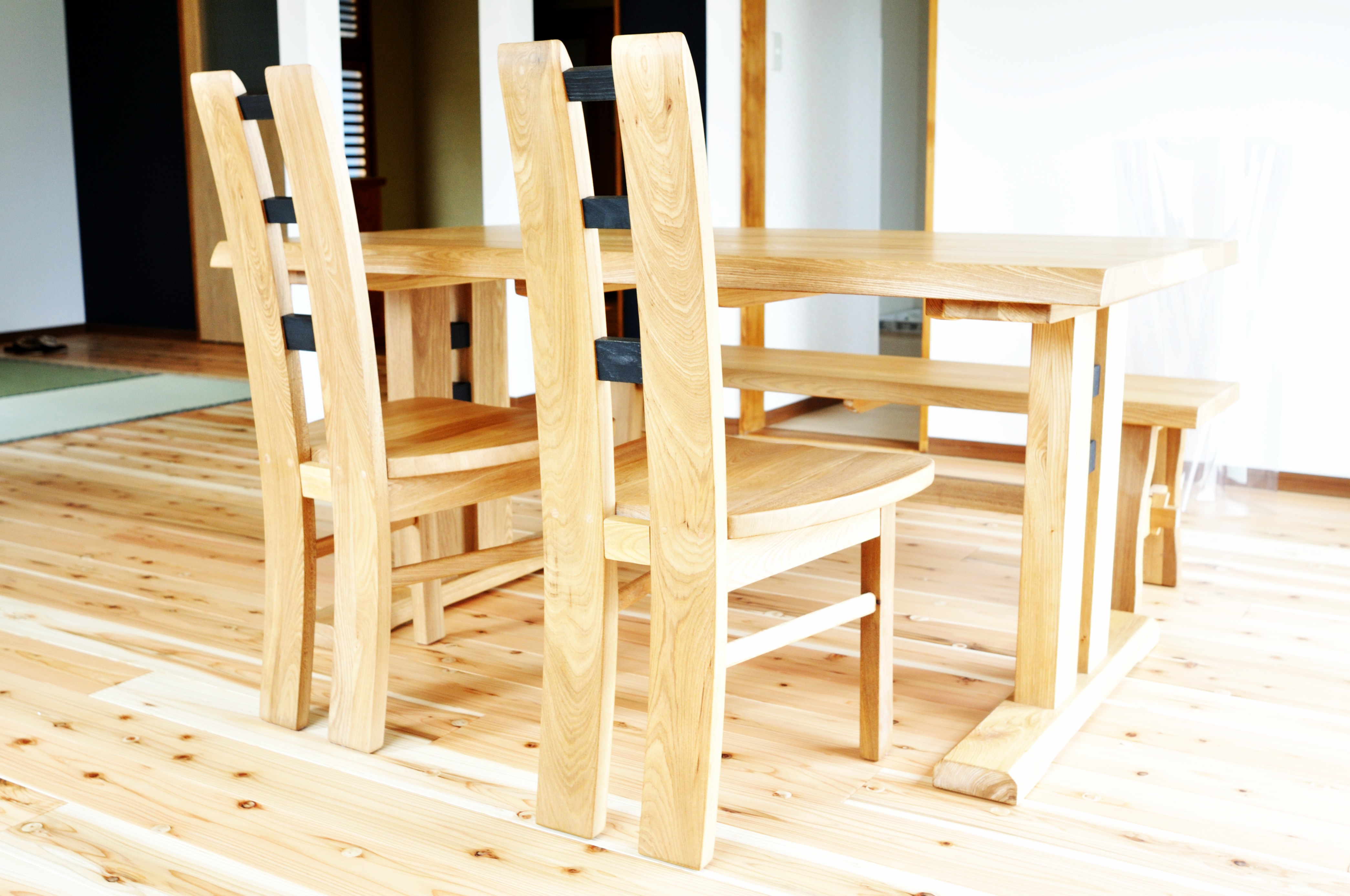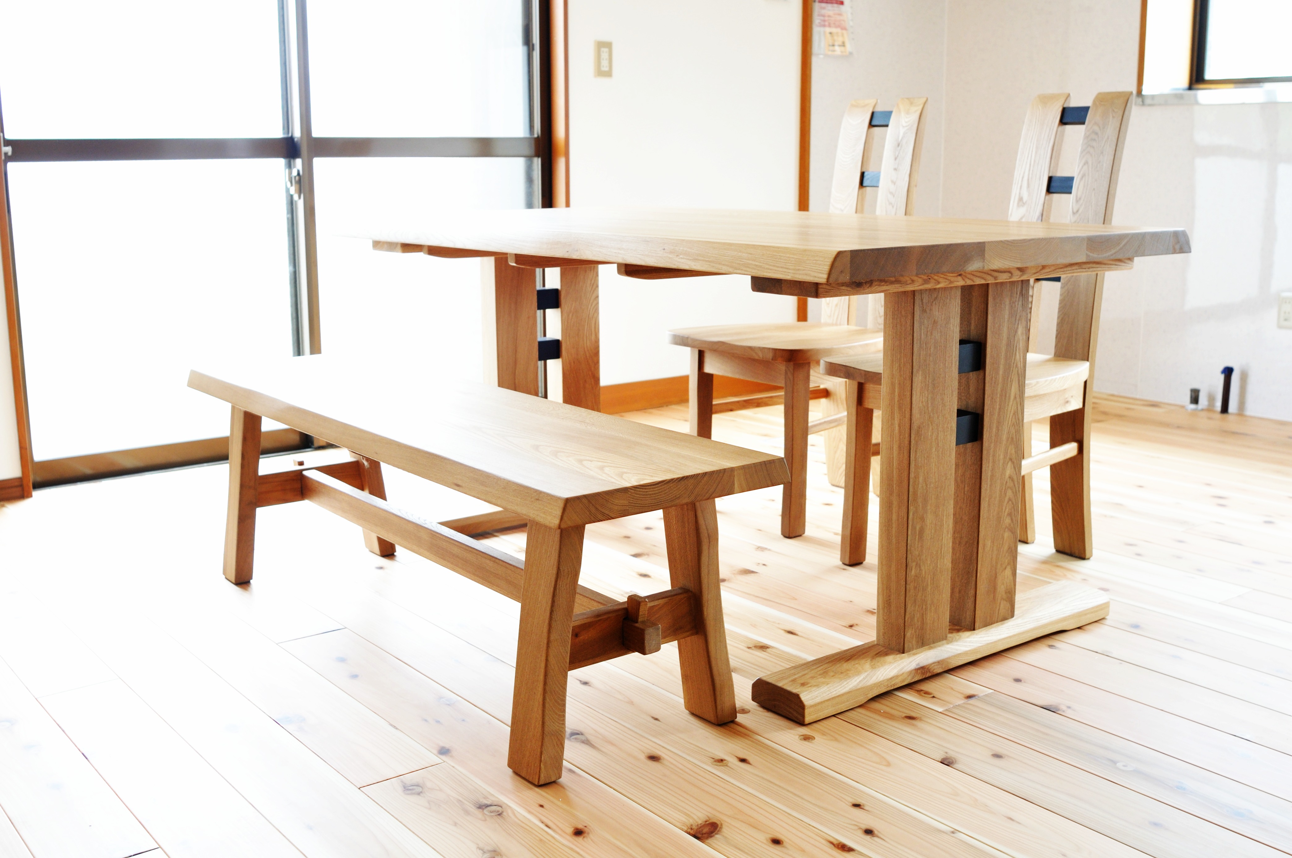 楡無垢材のダイニングセット(テーブル/ベンチ/チェア)をお届けしました。