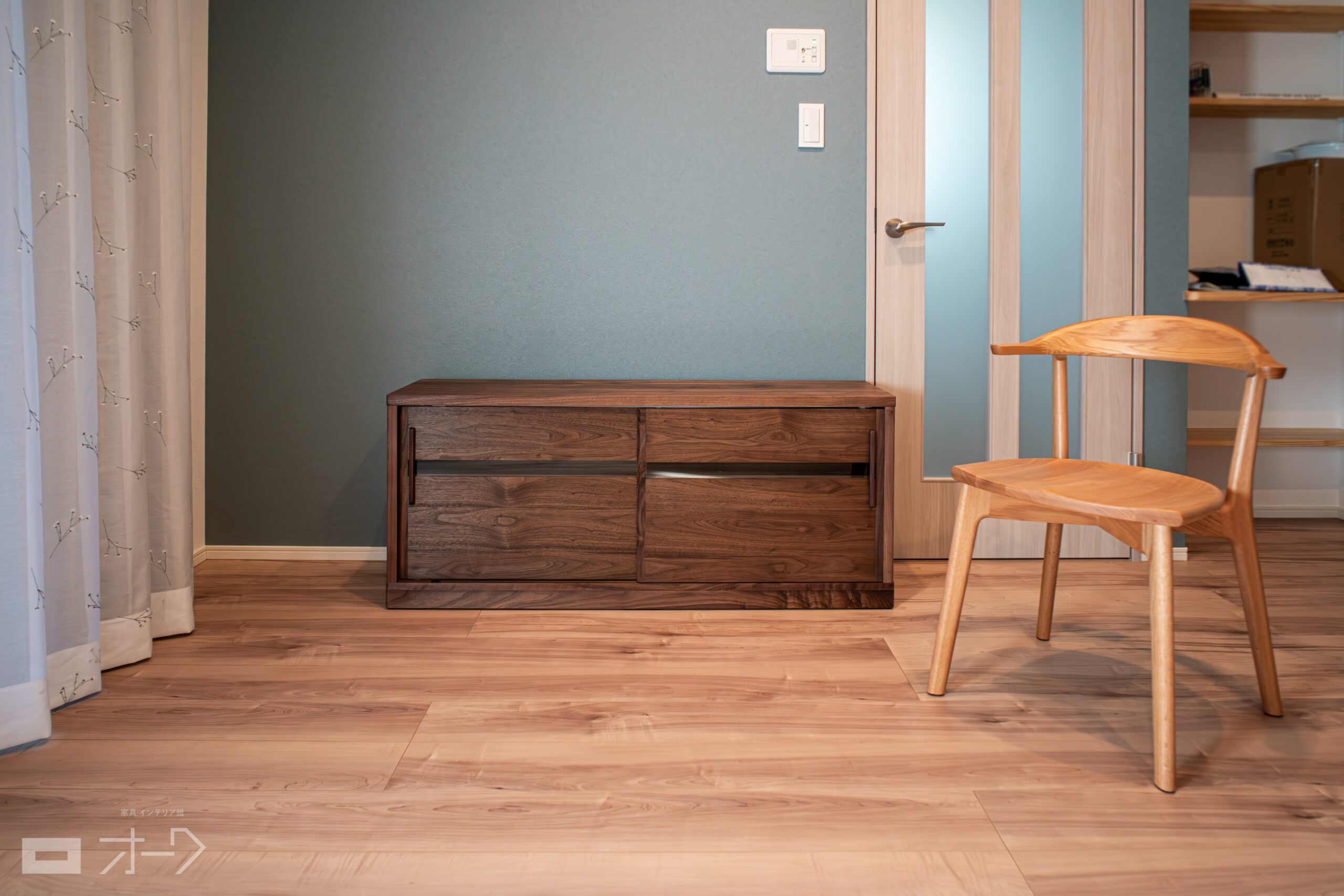 ブラックウォールナット無垢材のオーダーTVボードと、ナラ(オーク)無垢材のダイニングチェアをお届けしました。テレビボードは、寸法やガラスの有無などを自由設計できる、フルオーダーにてご用意しました。既製品ではなかなか欲しいサイズ・仕様が見つからない場合に、様々なご要望に対応できるため人気があります。