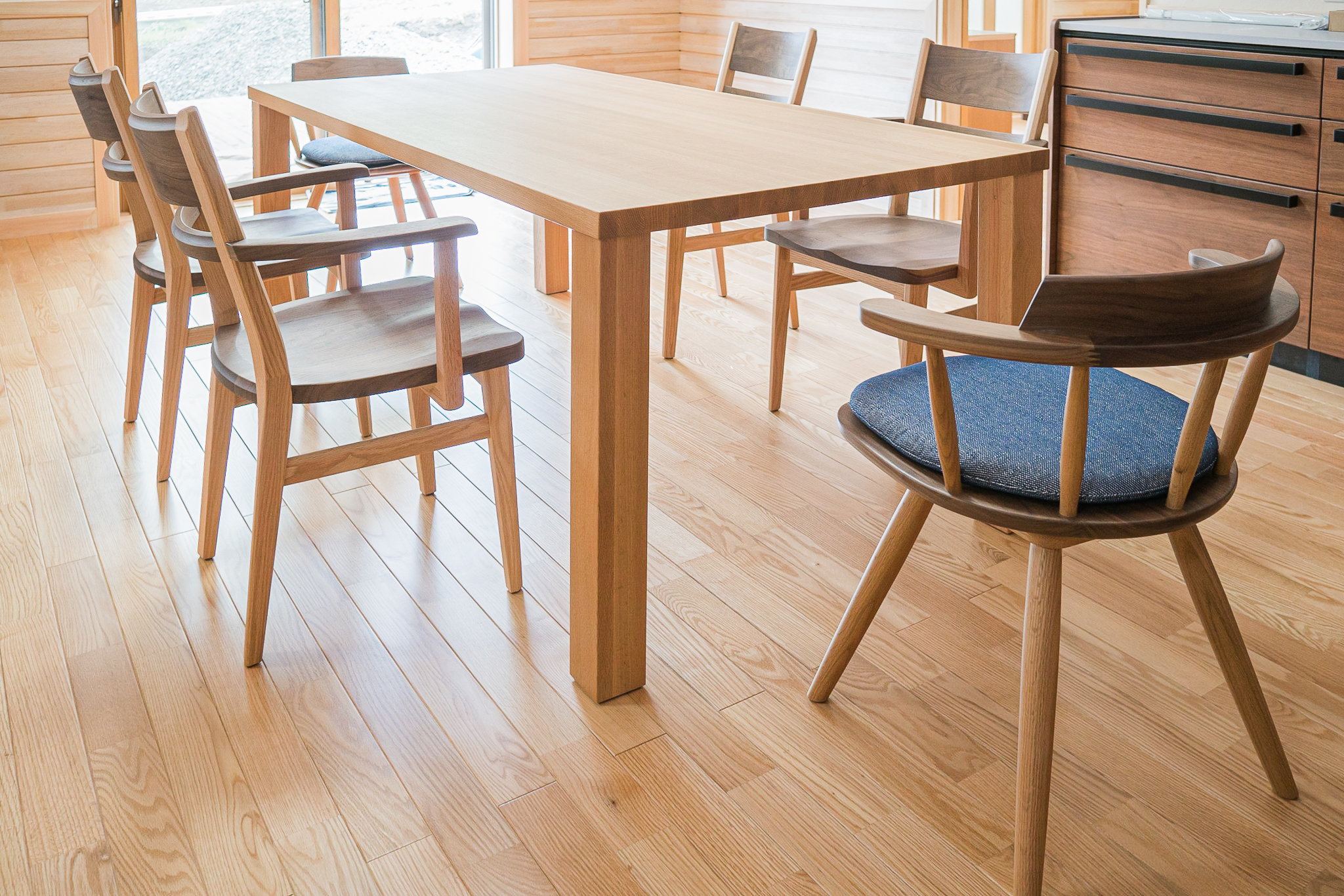 ナラ(オーク)無垢材のダイニングセットをお届けしました。ダイニングチェアにはブラックウォールナット無垢材を配したツートンカラーのデザインをお選びいただき、高級感と賑やかさが合わさった楽しげな空間になりました。