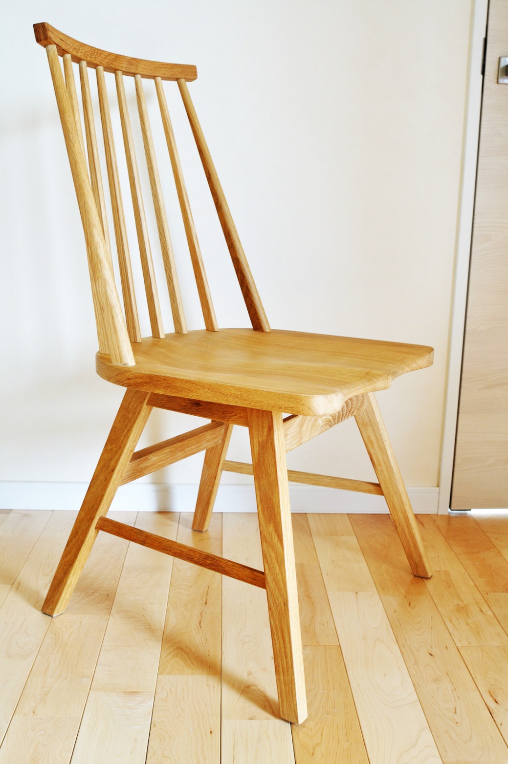 チェアの背もたれは丁寧な造りがひと目で分かるスポーク仕様です。