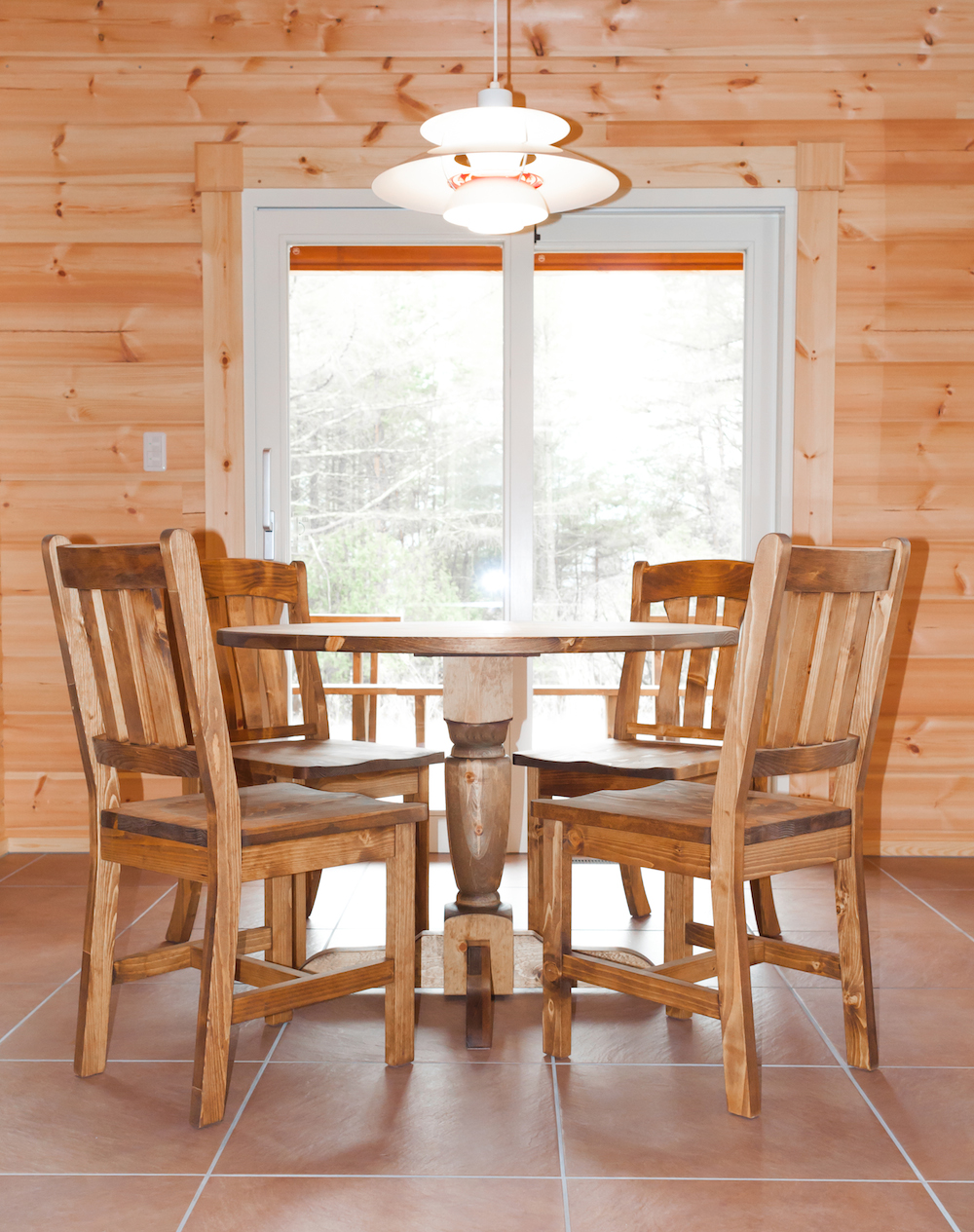 ダイニングルームはパイン無垢材の丸テーブルと椅子をお選び頂きました。